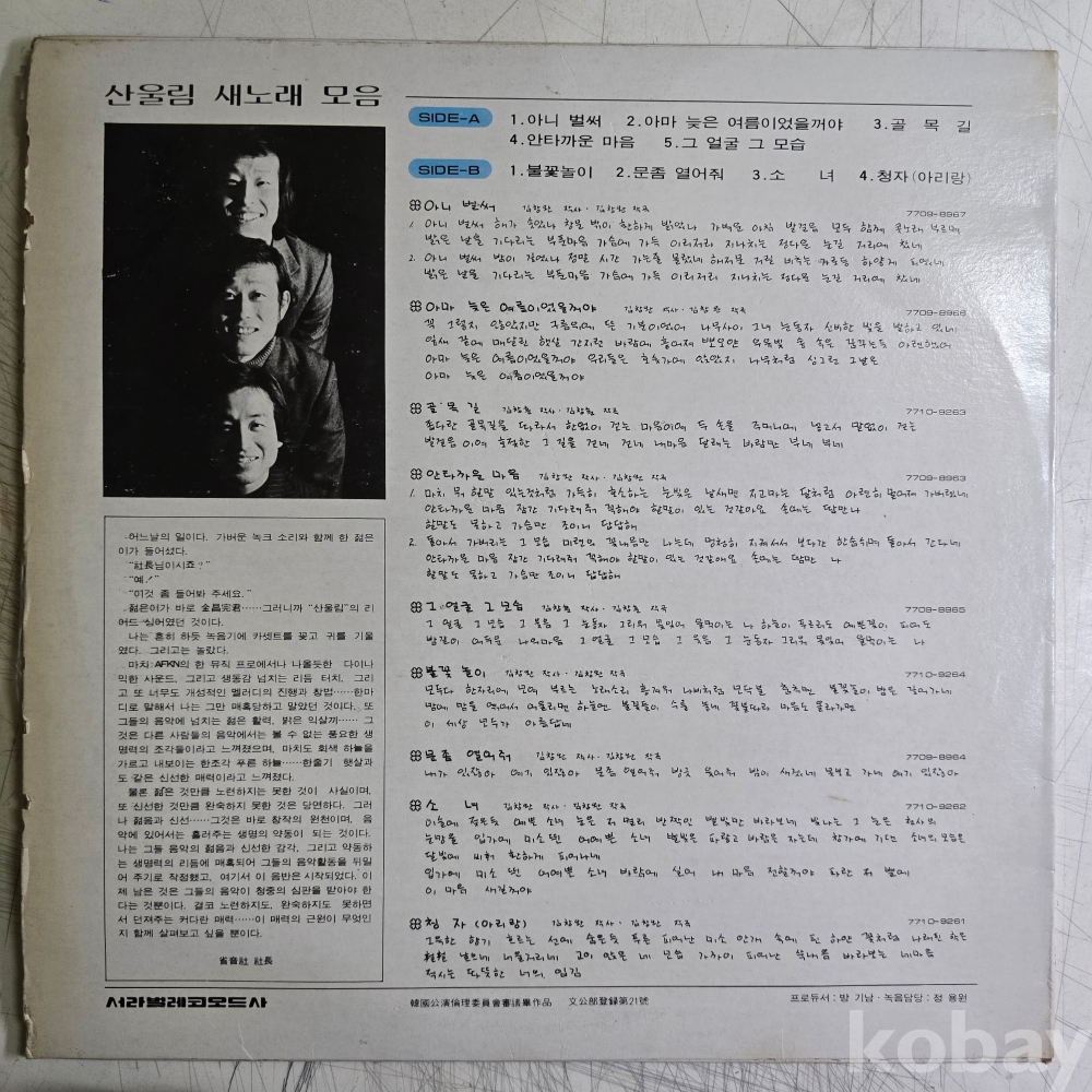 LP) 산울림 새노래 모음 (아니벌써 / 불꽃놀이)