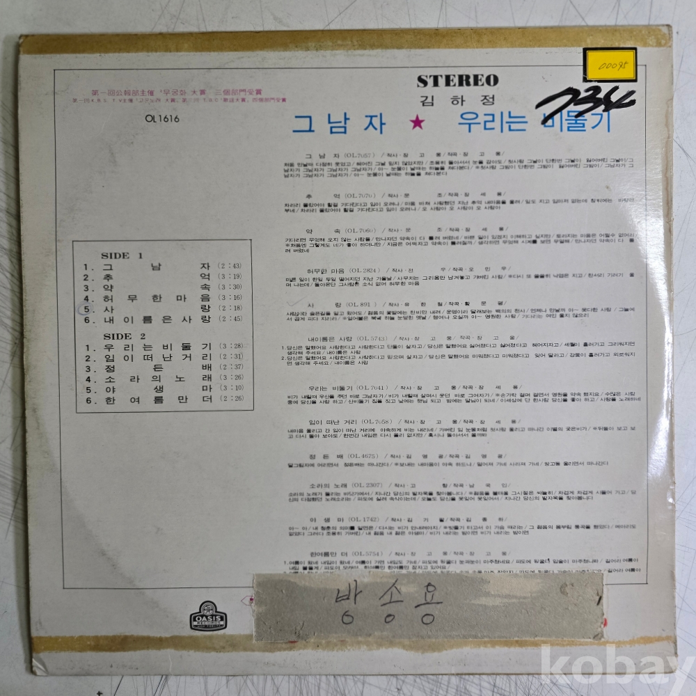 | 자켓상태 | VG : 주름, 접힘, 모서리 찢김 다수 | 음반상태 | VG : 생활 기스 다수, 가벼운 노이즈 존재 | 발매정보 | 초반 | 가사지여부 | 무 |