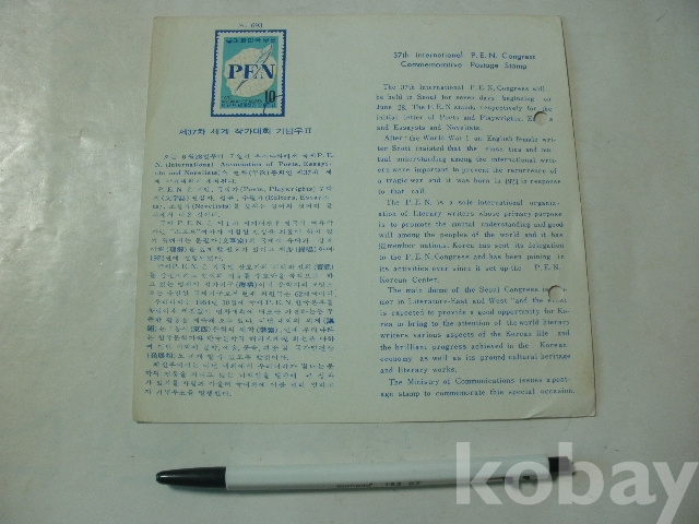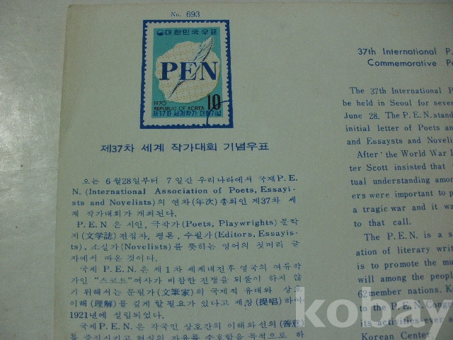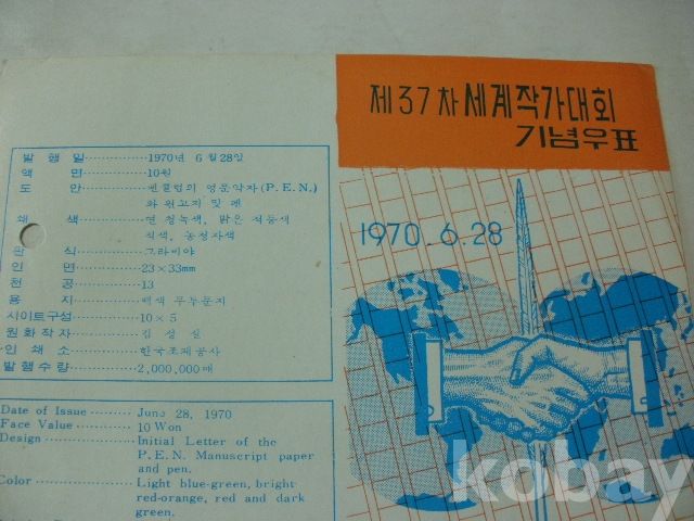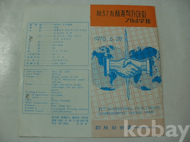 제37차 세계작가대회 - 기념우표 (1970년, 체성회)