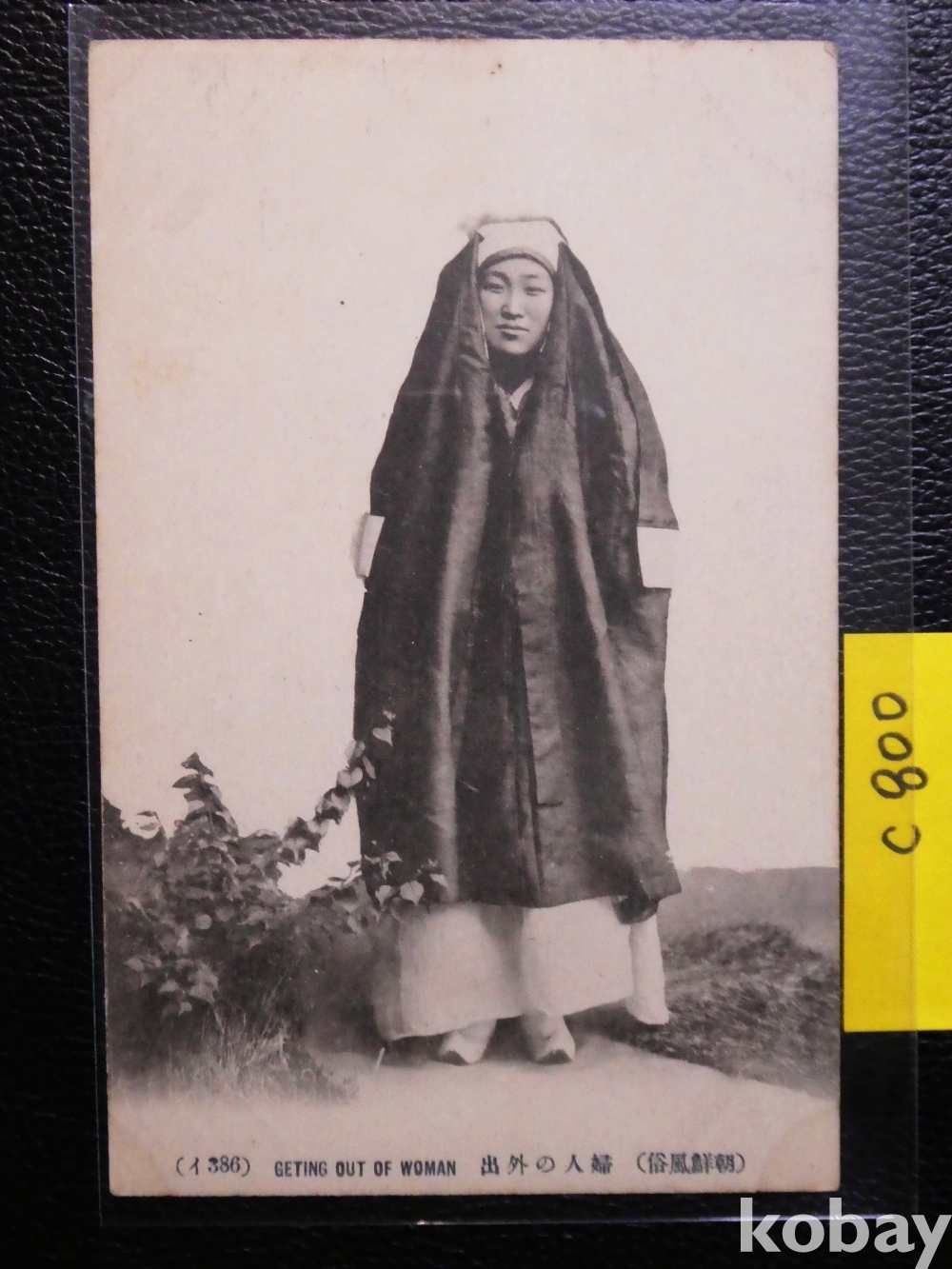 ▣한국근대엽서(진본): 조선인 부인의 외출, 장옷입은 조선 여인, 히노데상행/1매.
