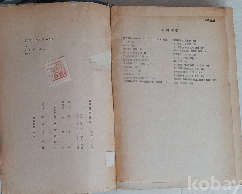 낙장 없음, 낙서 있음, 하드표지 완전, 책등 훼손, 배명중고등학교 도서장서인, 한국전쟁시기 귀중한 화보 다수 수록