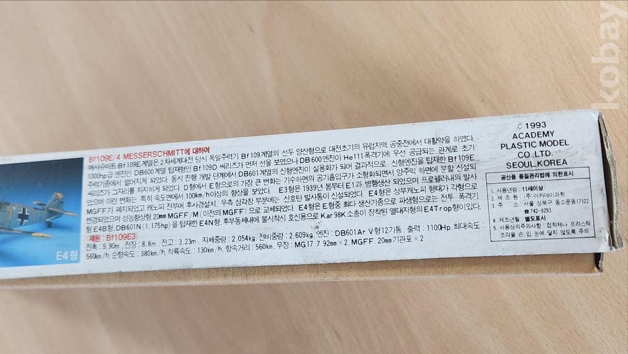 (고전프라, 올드프라. 장난감) 아카데미과학, Bf109E3 메샤슈미트 (1:72)