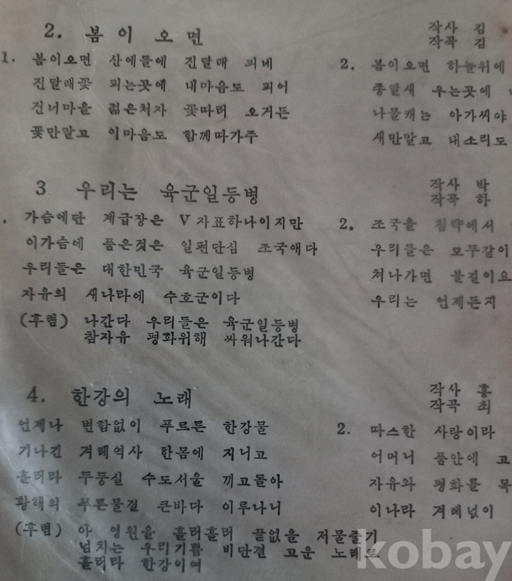 3. 우리는 육군 일등병(박두진 작사,하대응 작곡,이인범 노래).