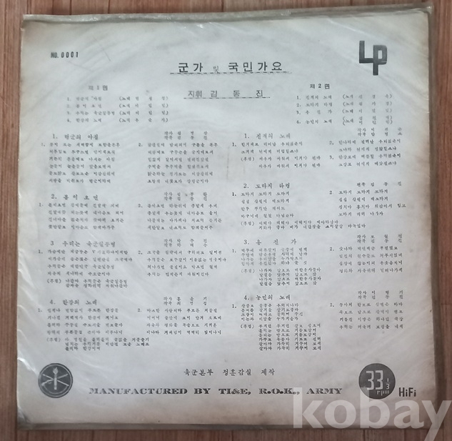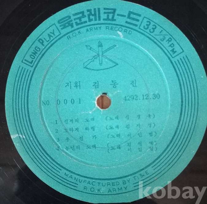 이게 아주 우리나라에서 앨피를 제작하기 시작한던 때 나온 초창기 음반이지요. 육군레코드에다 KBA, KBS KBCA레코드 등등이 그런거 같은데 다 1959년도를 전후한 해였던거라 합니다, 이 육군레코드 음반(0001계열)은 총 몇장이 나왔는지 모르겠네요 내가 가진게 이걸 포함해서 0002, 0003 등 서너장은 되지 싶네.