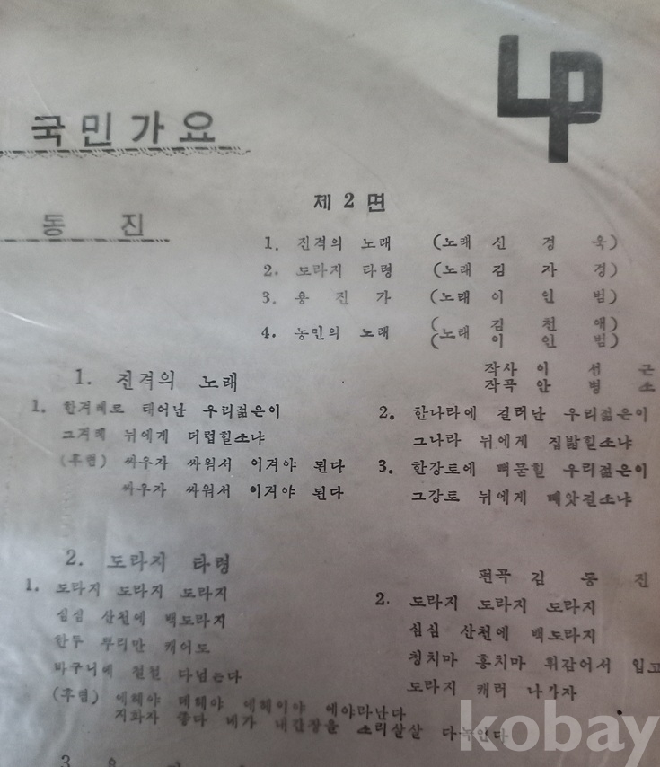 제2면, 1. 진격의 노래(이선근 작사,안병소 작곡,신경욱 노래).