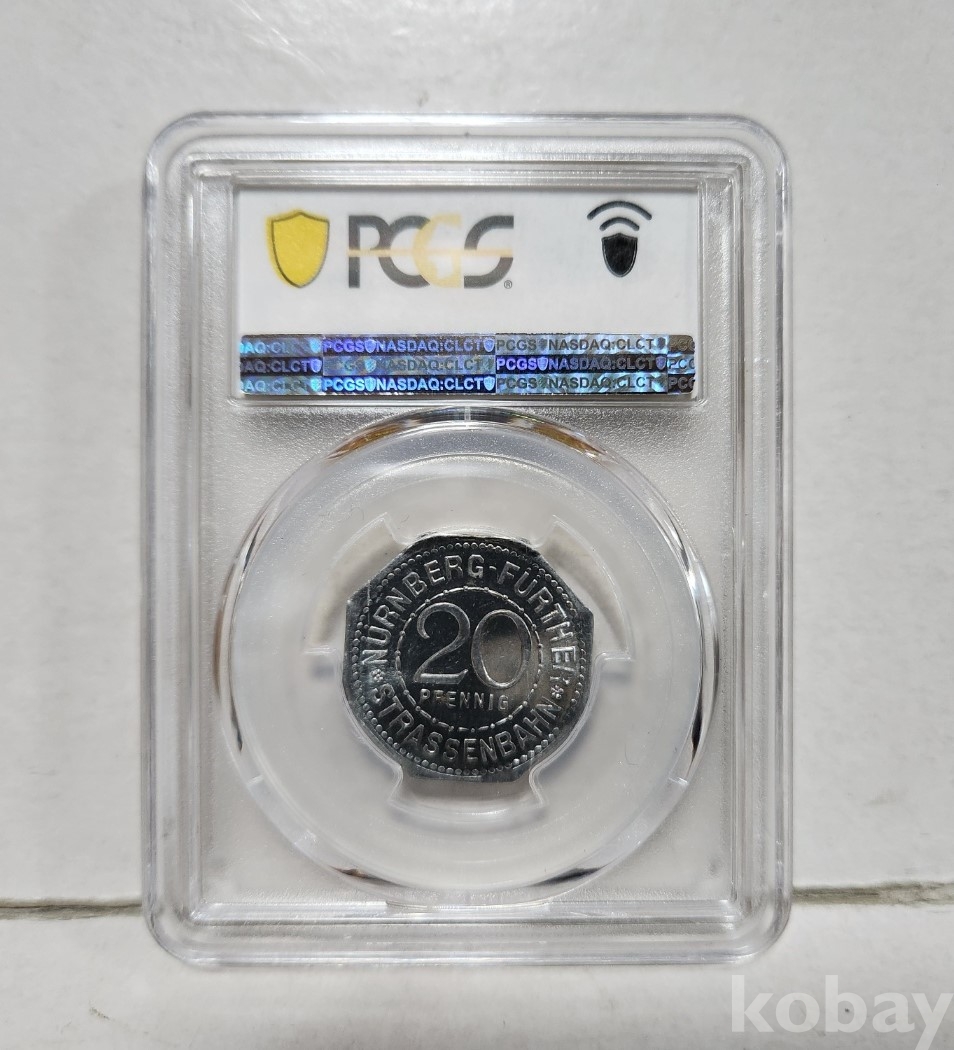 -독일 뉘른베르크 전차 토근 20페니히 PCGS64 등급 입니다.(일반 주화보다 귀합니다.)