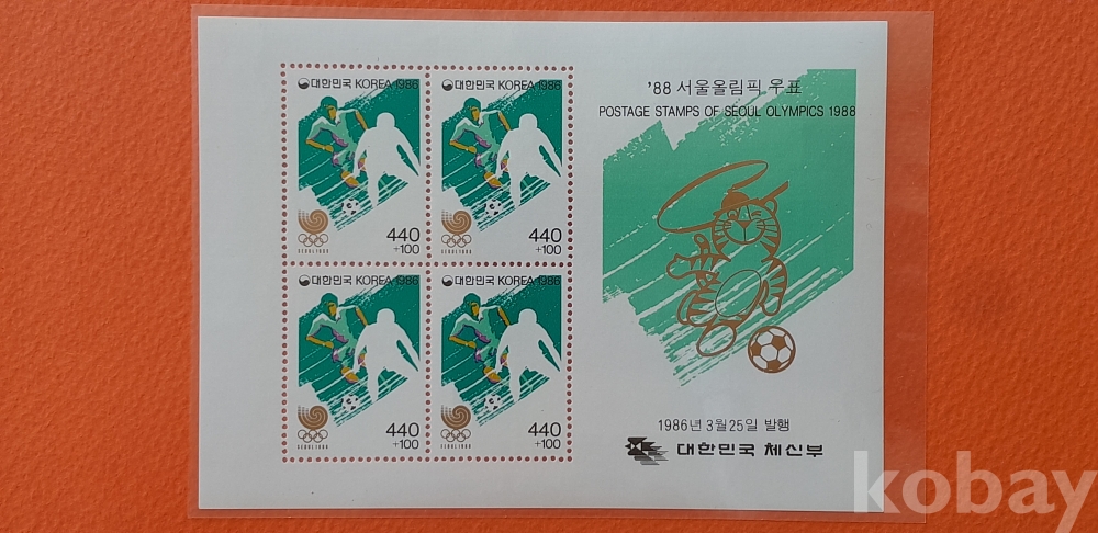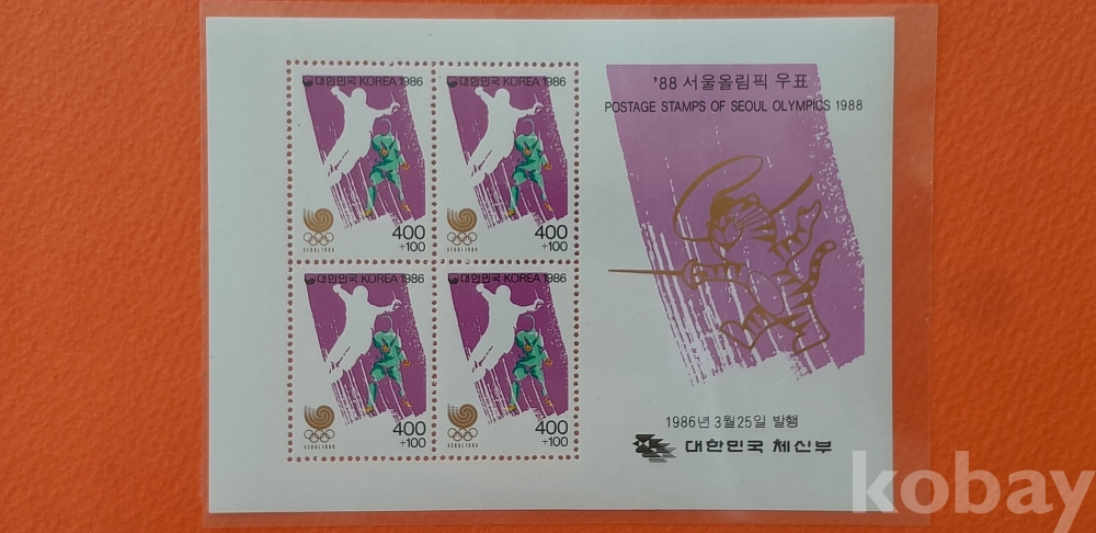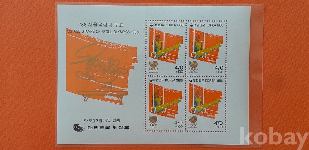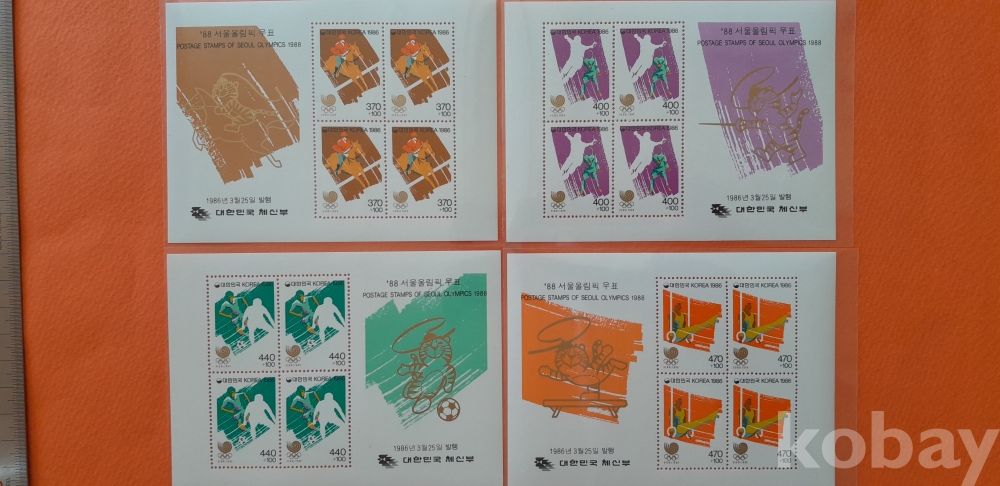 1986년 88서울올림픽 시리즈 5집 고액권 소형시트 4종 입니다.