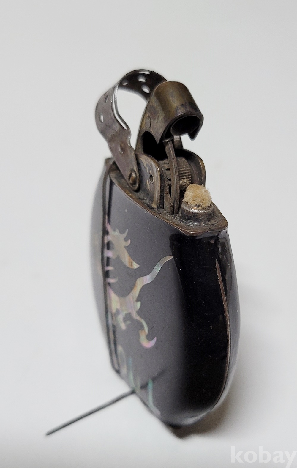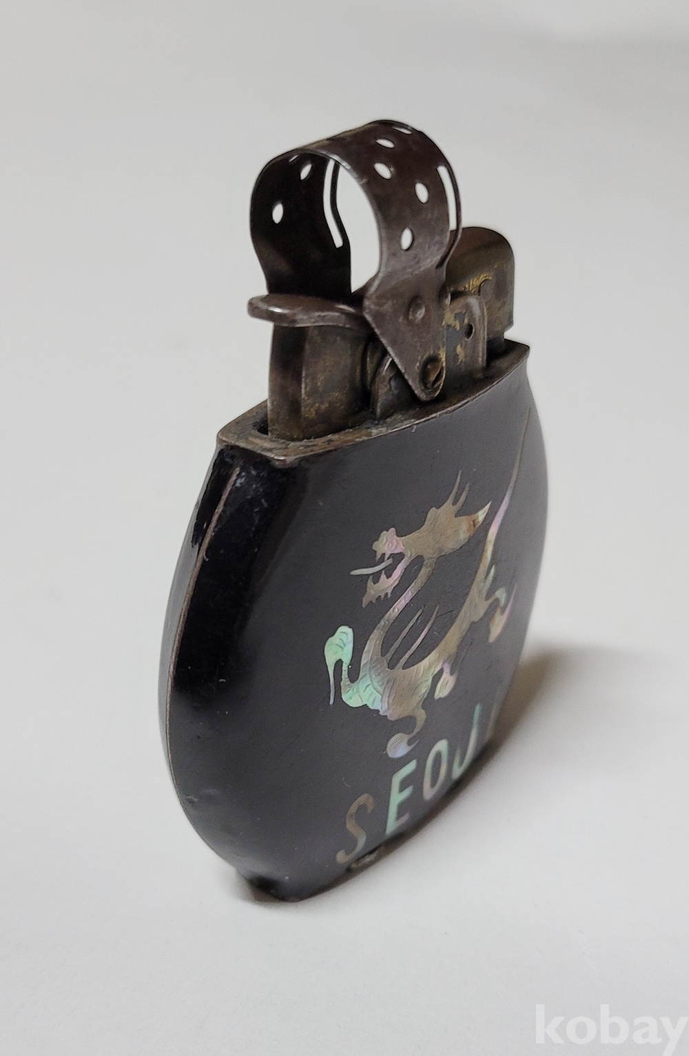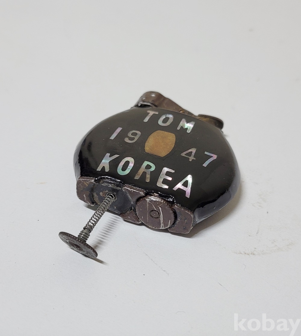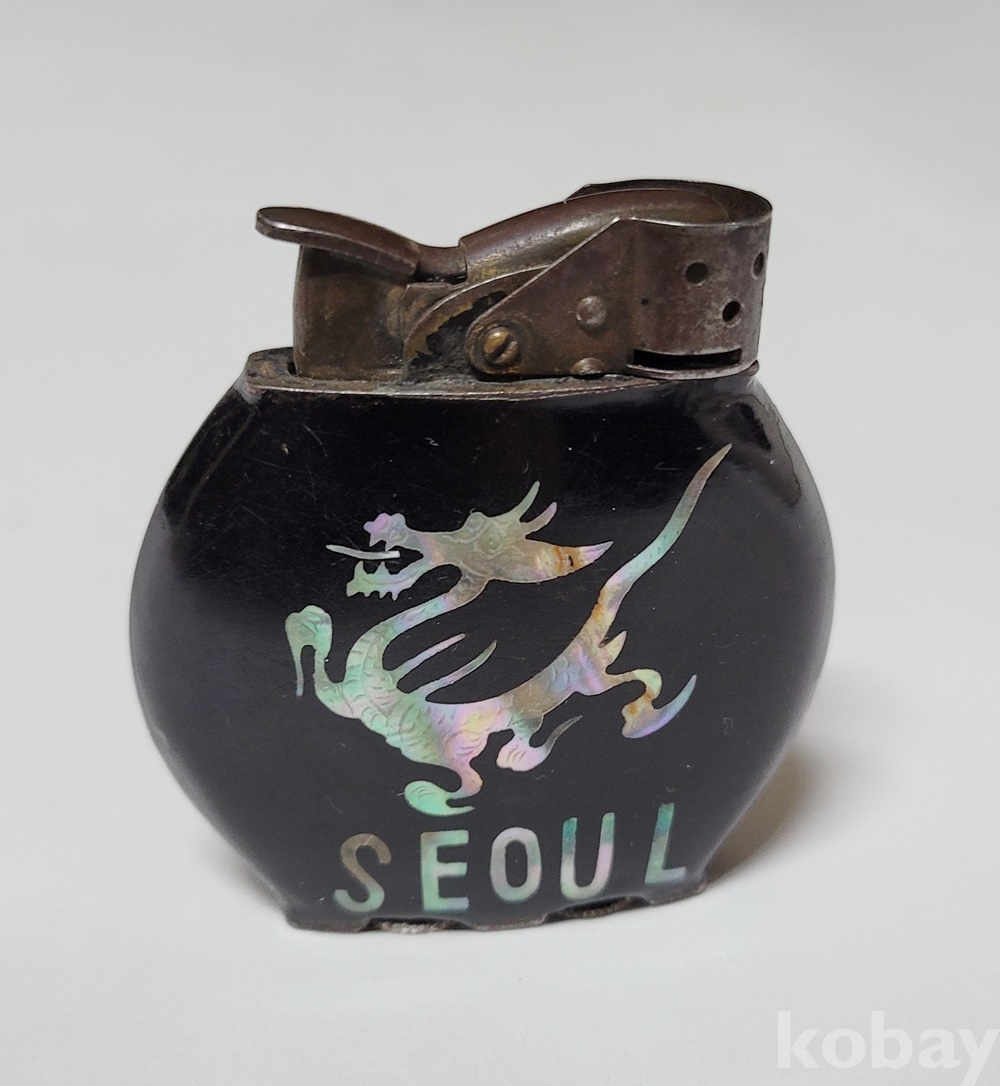 고전 라이터로 메이커는 알 수 없으며 각 면에 “TOM 1947 KOREA” 와 “나는 용飛龍 SEOUL”이 자개로 깔끔하게 문양 되어 있습니다.