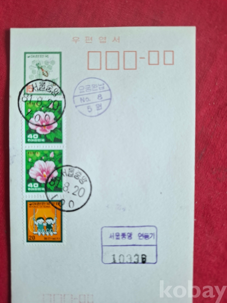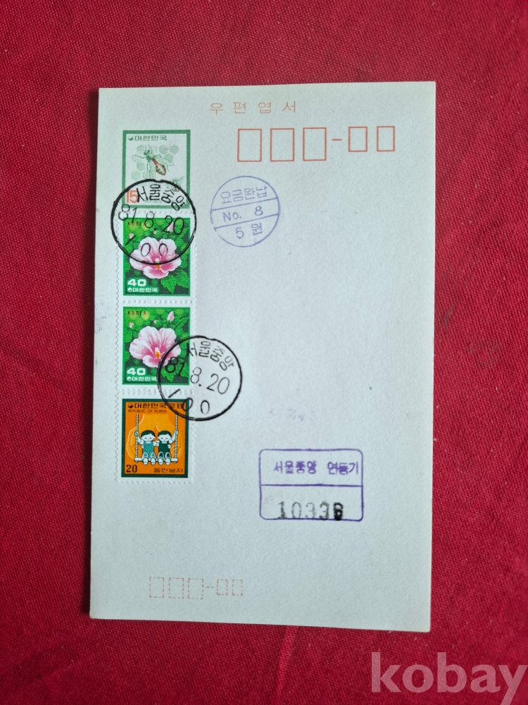 1980년 15원 짜리 등기 우편엽서 (40원 우표 2장과 20원 우표가 추가 된 완전 미사용 우편 엽서)