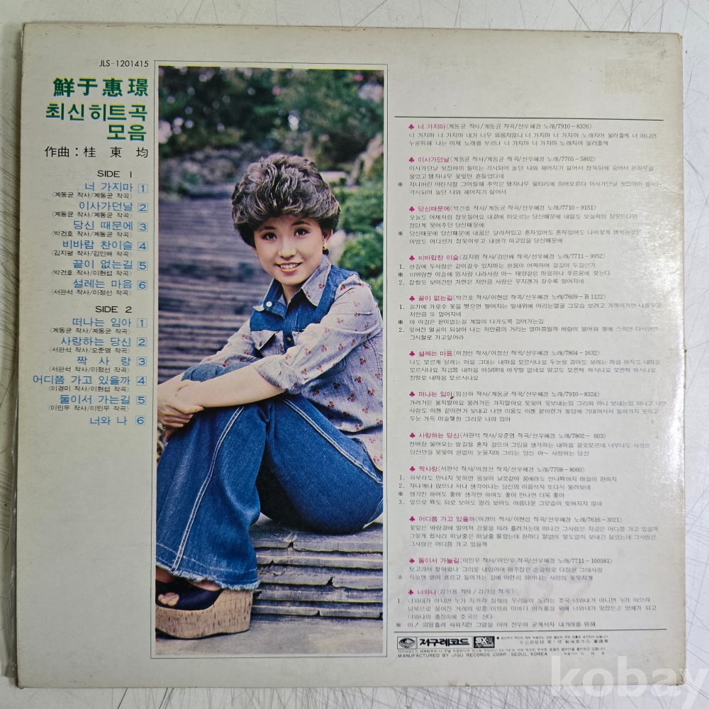 | 자켓상태 | VG : 주름, 접힘, 모서리 찢김 다수 | 음반상태 | VG : 생활 기스 다수, 가벼운 노이즈 존재 | 발매정보 | 초반 | 가사지여부 | 무 |