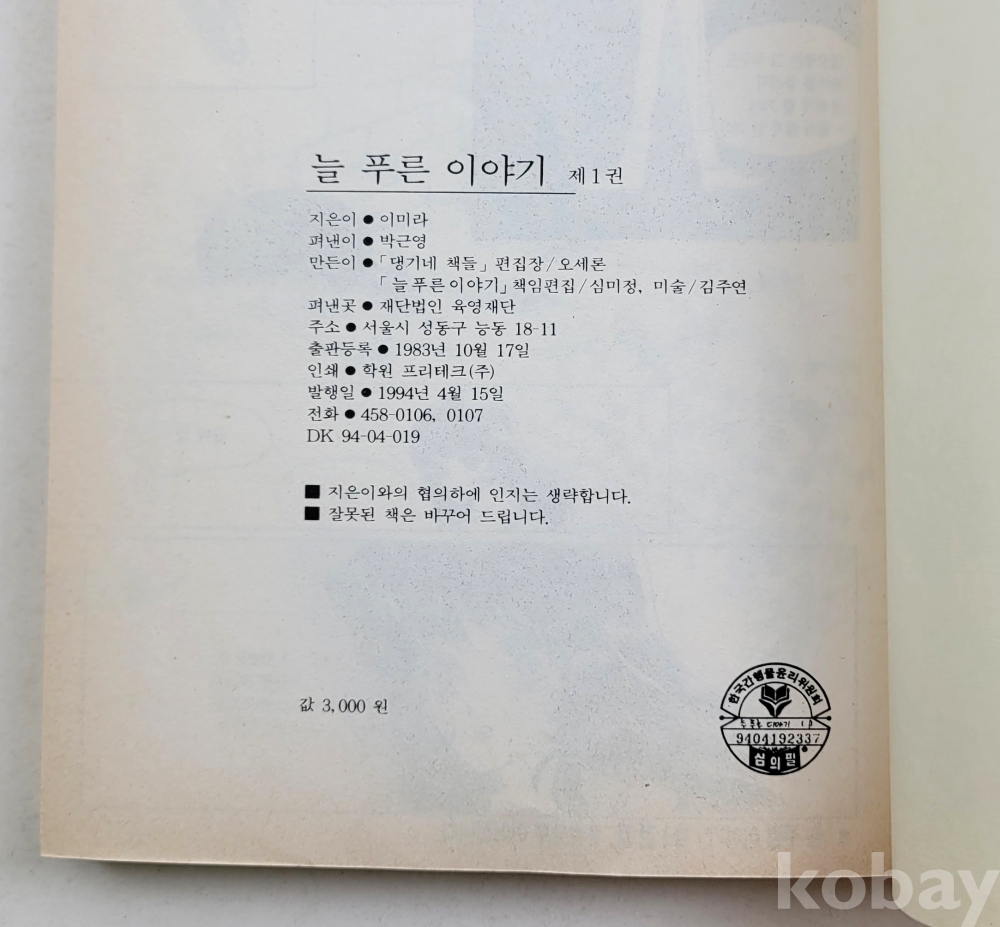 물 품 명 | 이미라 / 늘 푸른 이야기(1~6)완결 총6권 / 연도 본문표기 / 육영재단 |