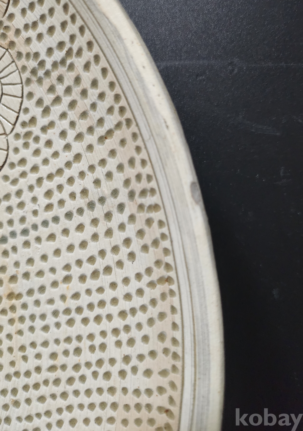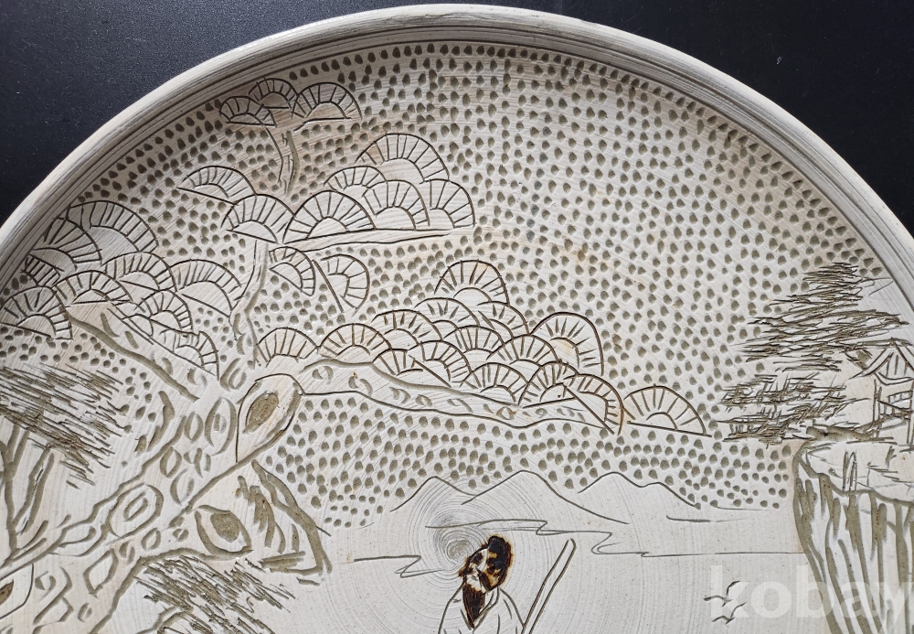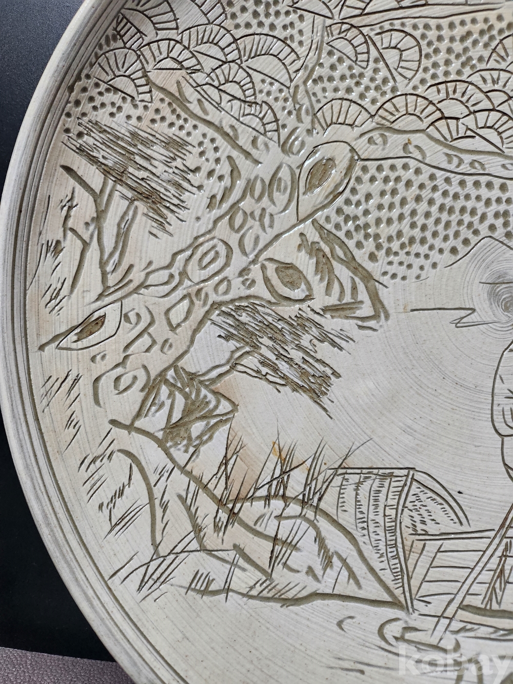 청담[淸淡] 한창문[韓昌文] 초기작[初期作] 분청음각강상어락도문접시 粉靑陰刻江上魚樂圖紋楪匙