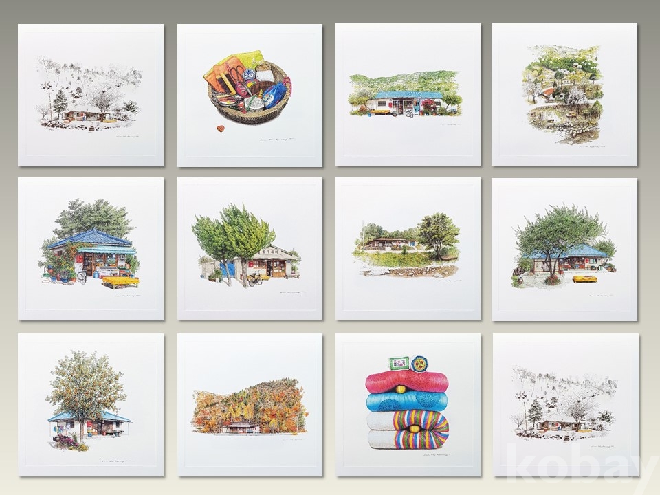 어릴 적 보았던 고향의 풍경들을 크고 작은 점들로 가득 채워내