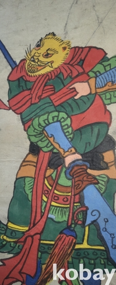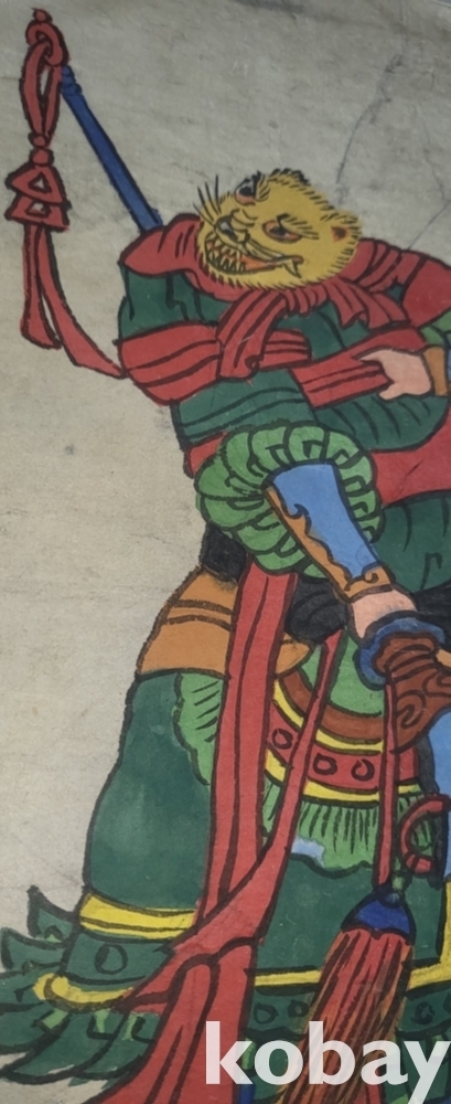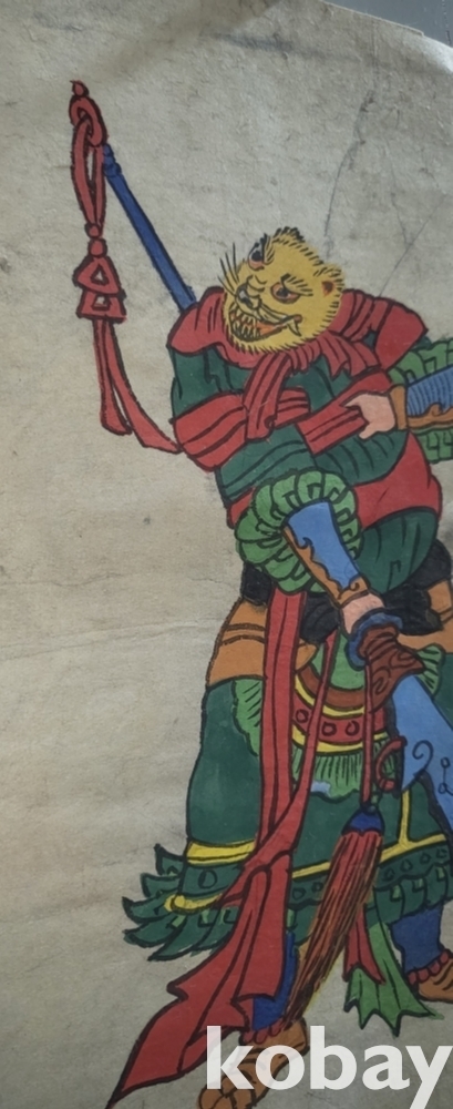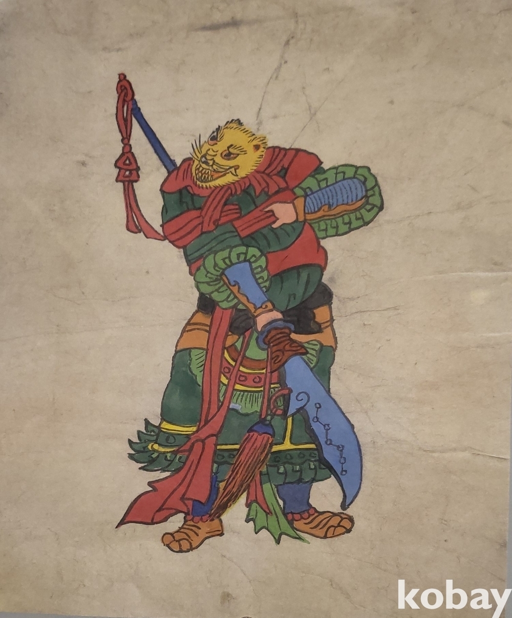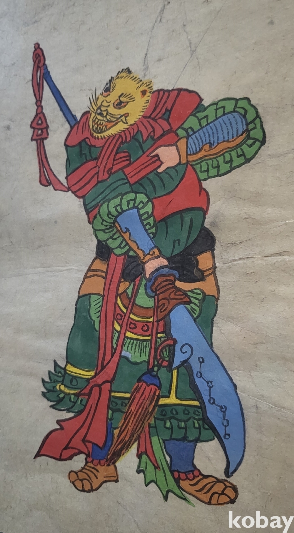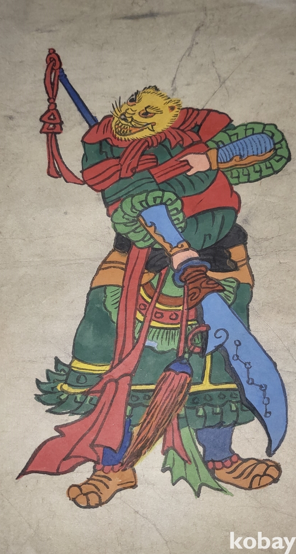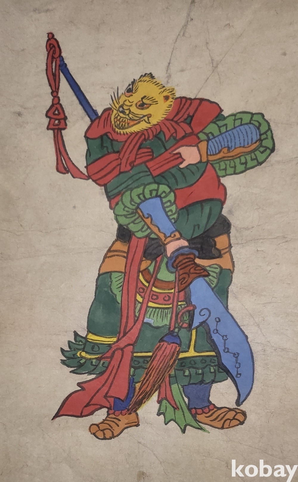 구한말 연대 갖춘 장지 바닥에 당채로 그려진 동물 형상 그림입니다,