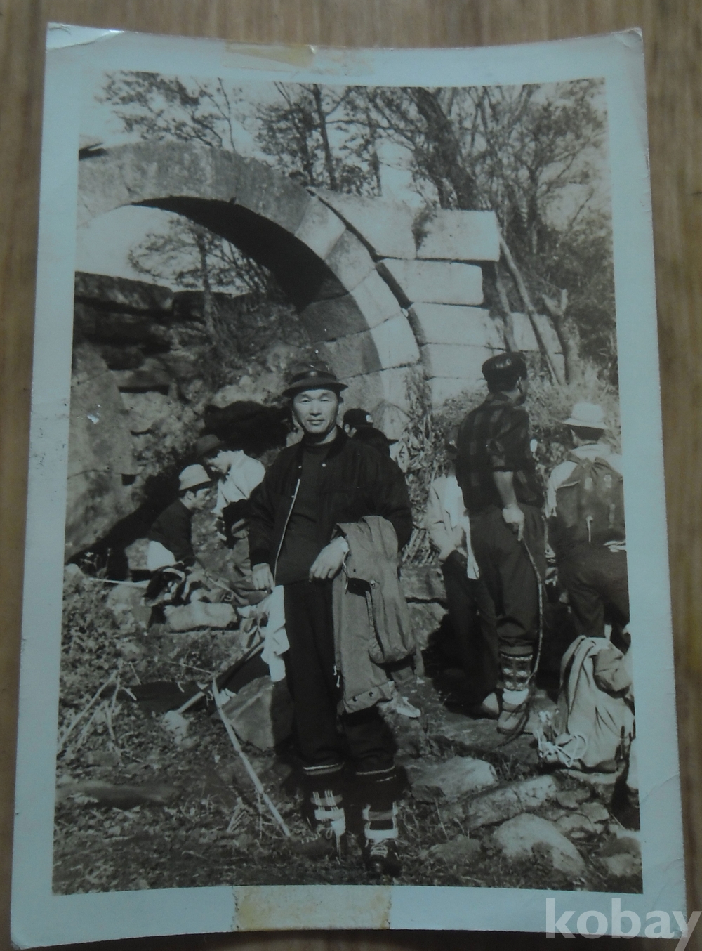흑백사진: 옛 성문 앞에서