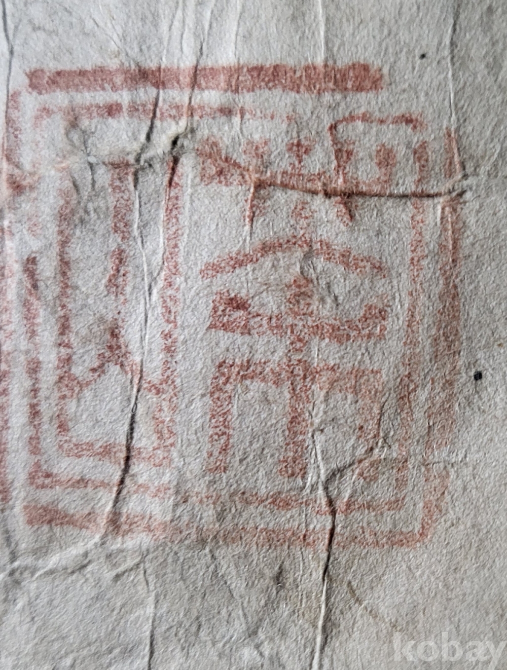 이미지에서 보이듯 첫 글자 상단이 탈락된 상태를 배접한 것입니다,
