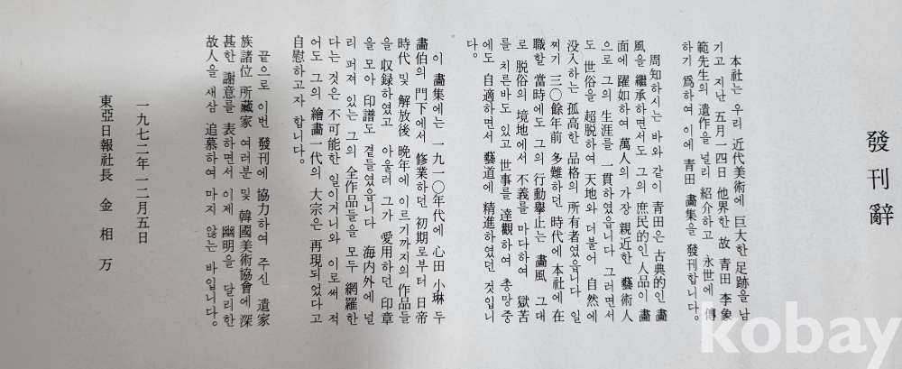 1972년 출간된 청전 이상범 화집(靑田畵集)입니다,