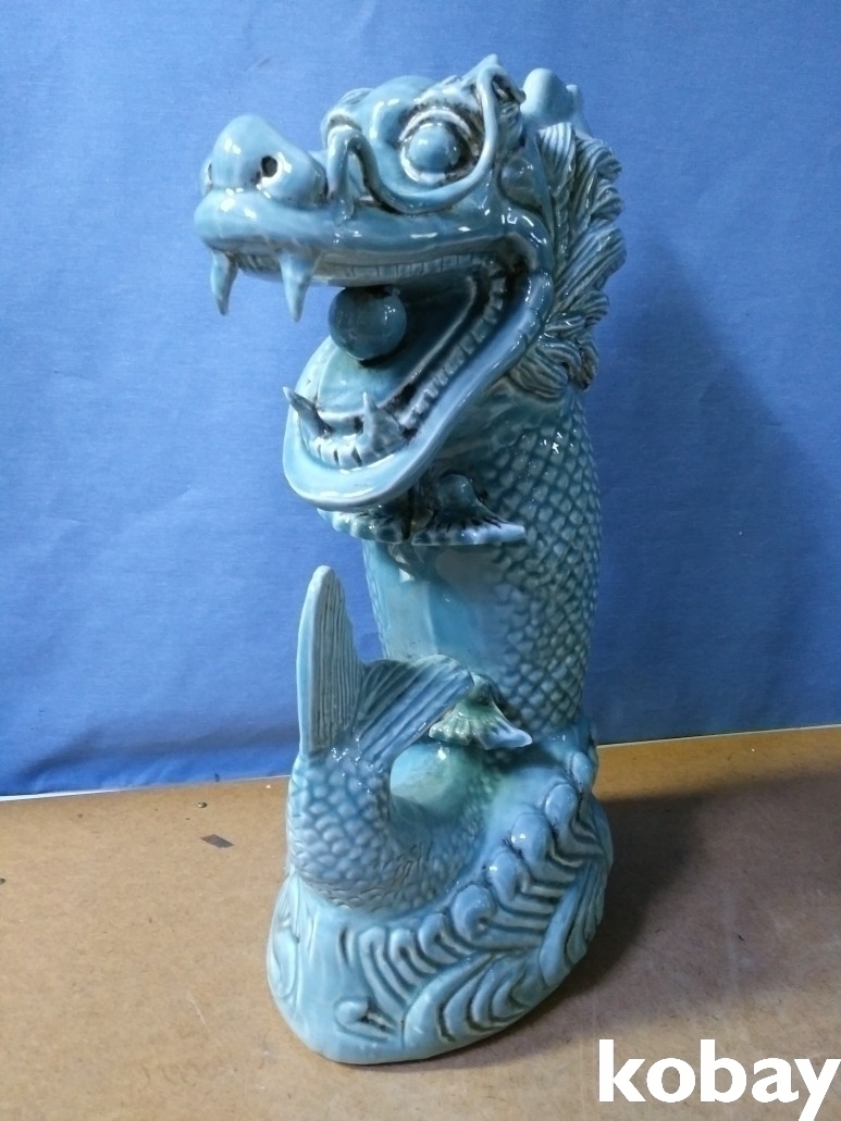 섬세하게 표현된 용머리에 물고기 몸통 도자기 입니다.