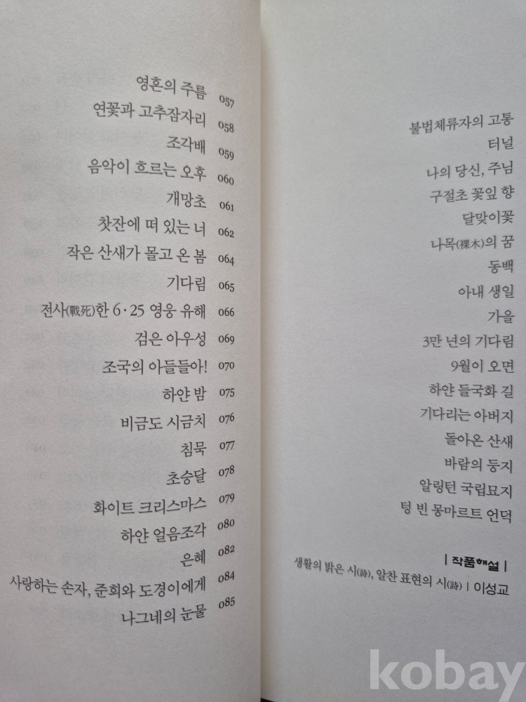 이성교 시인(성신여대 명예교수)의 해설. 75편의 작품.