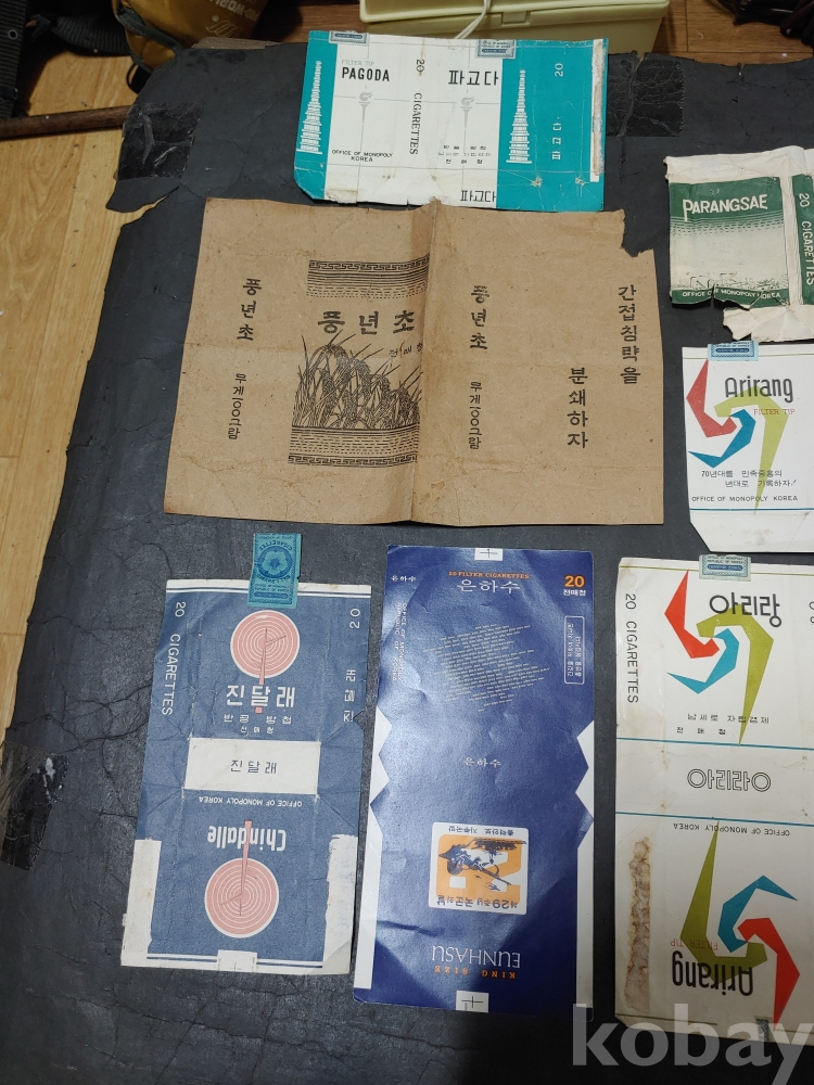 ""담배 포갑지 진달래 은하수 아리랑 금관 풍년초 금잔디 단오 파고다 파랑새 9종류 14개""