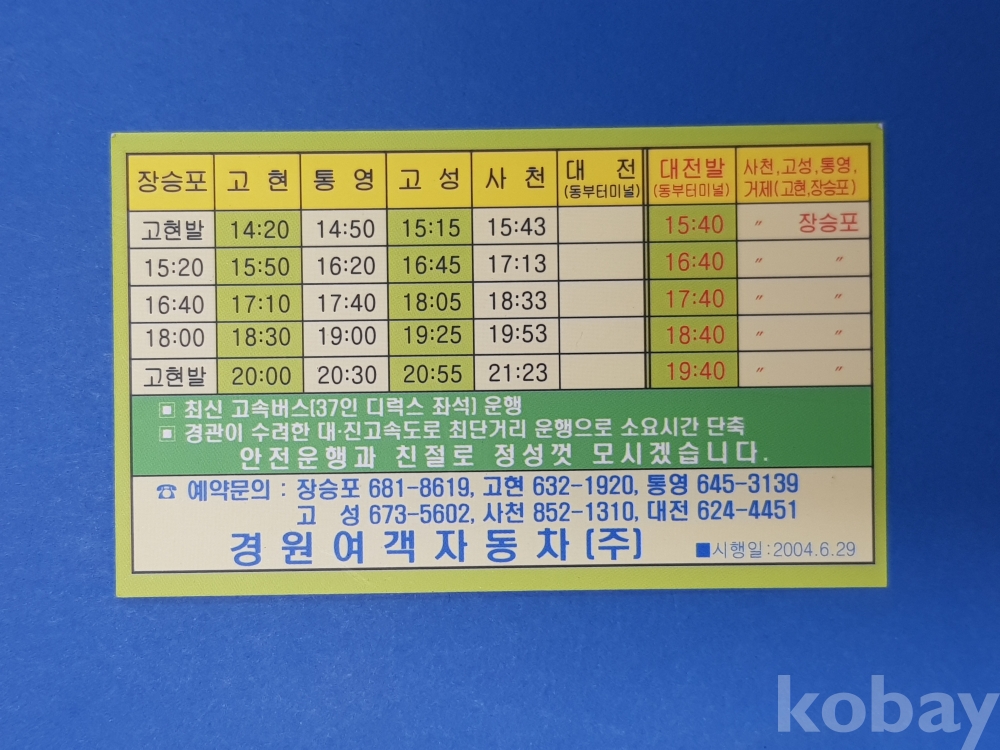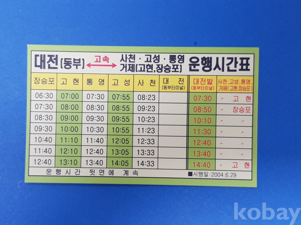 **** 대전(동부)↔사천·고성·통영·거제(고현,장승포) 운행시간표/2004.6.29/경원여객자동차(주)