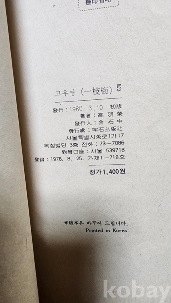 일지매 1~6편, 고우영 그림, 1980년
