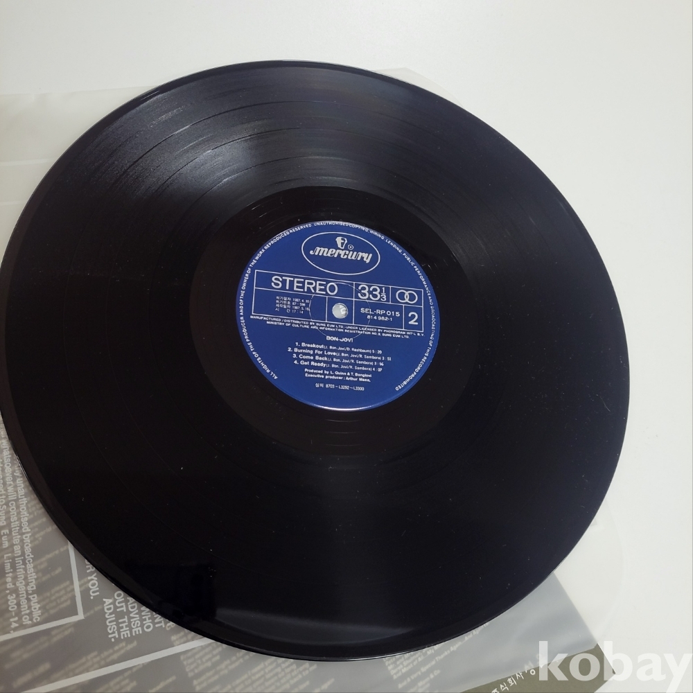 록 밴드 본 조비(Bon Jovi)의 데뷔 앨범인 《Bon Jovi》 LP 음반.