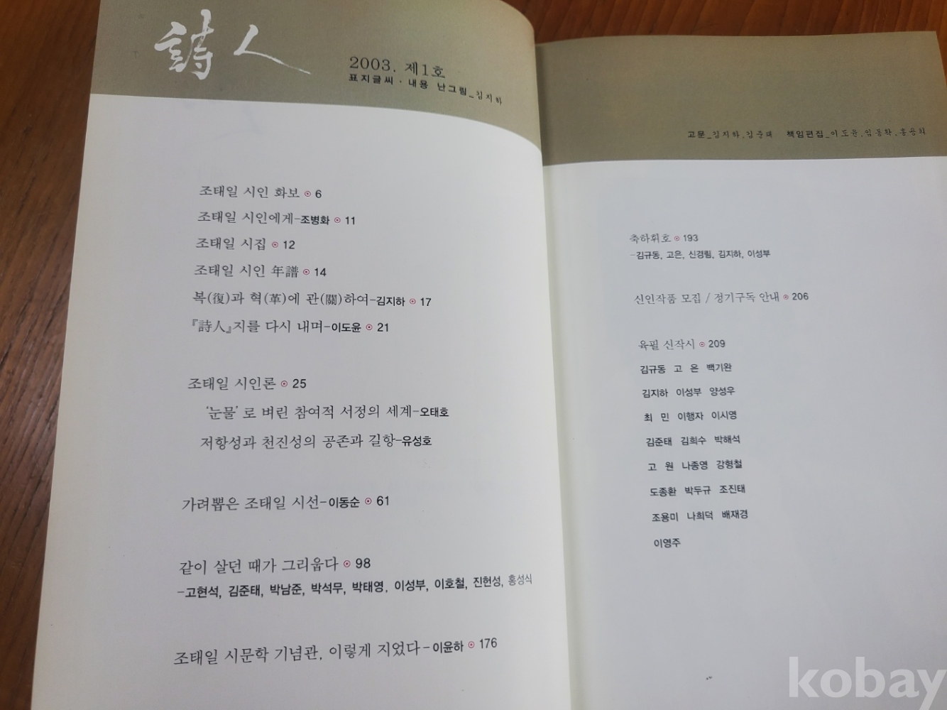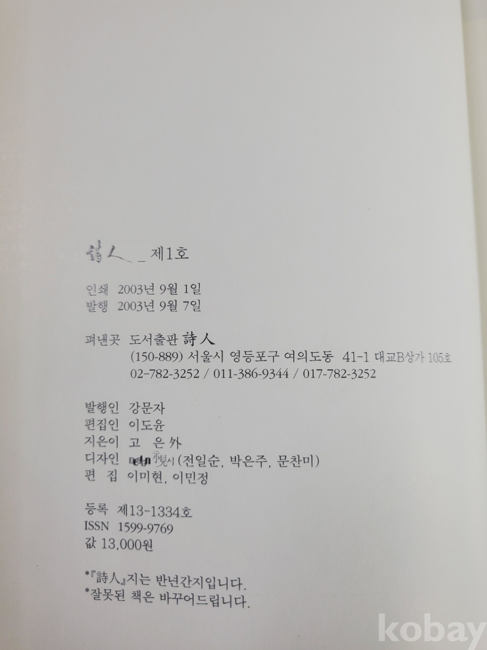 1. 시인 제1호 특별호, 도서출판 시인, 2003년, 253쪽, 상태 상, 사진 참조