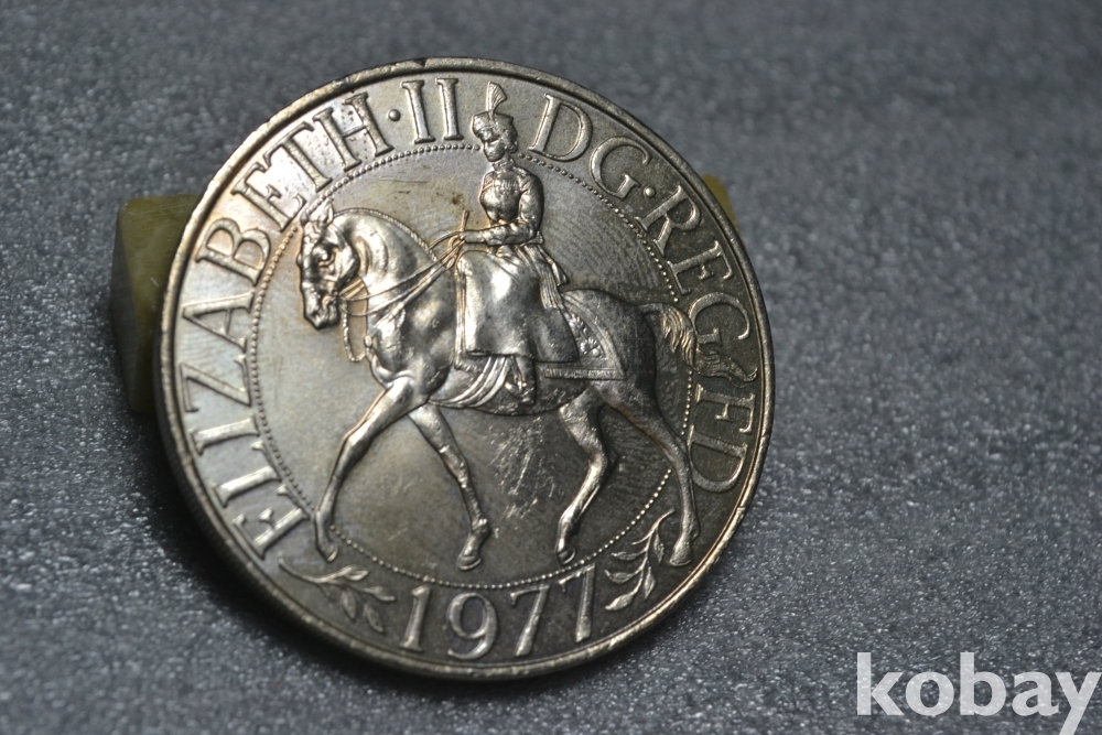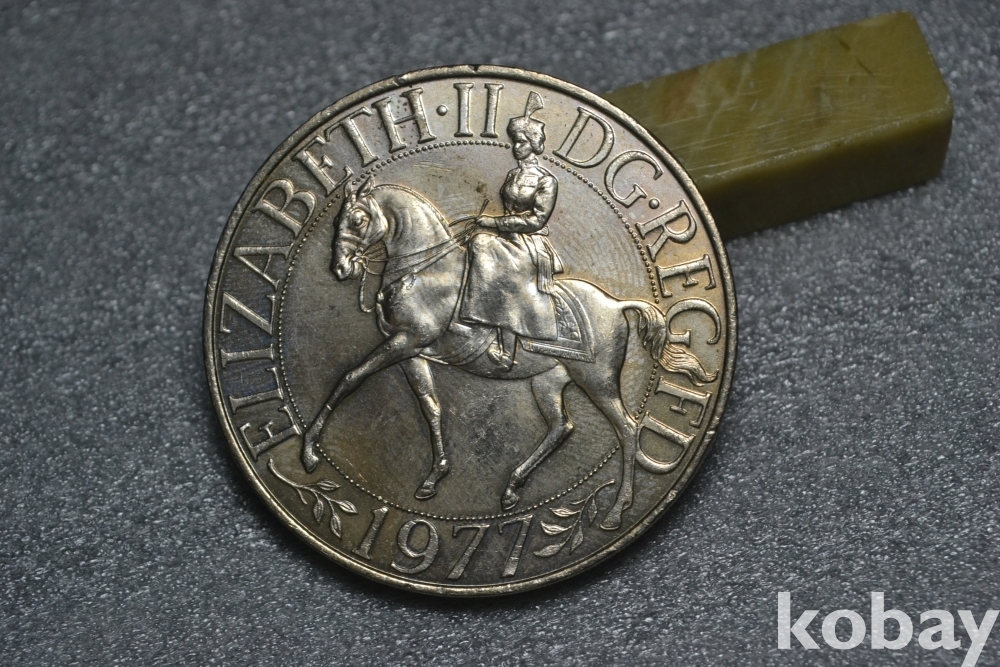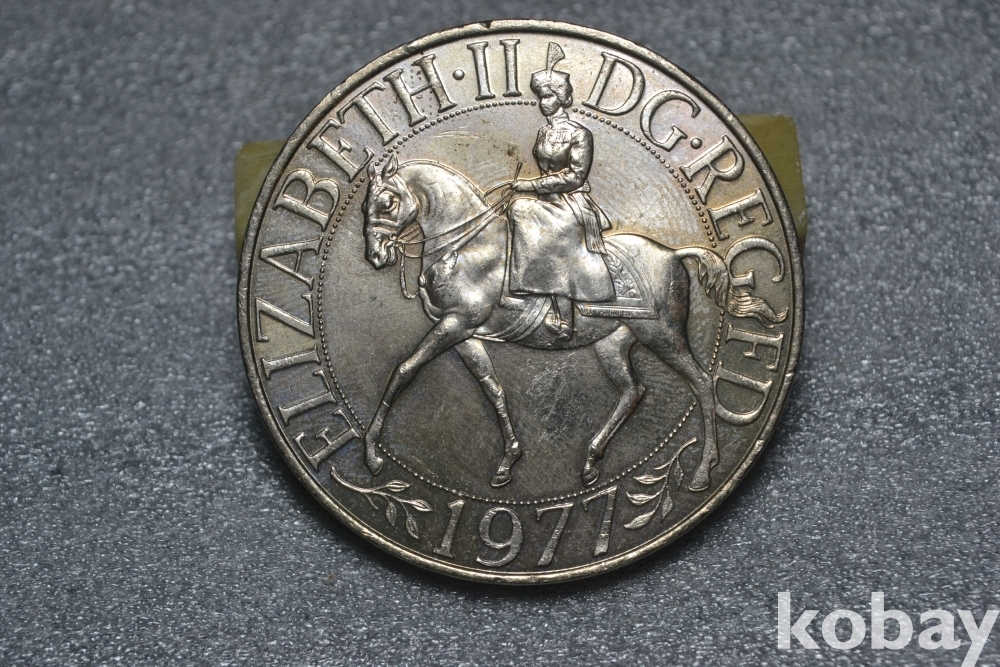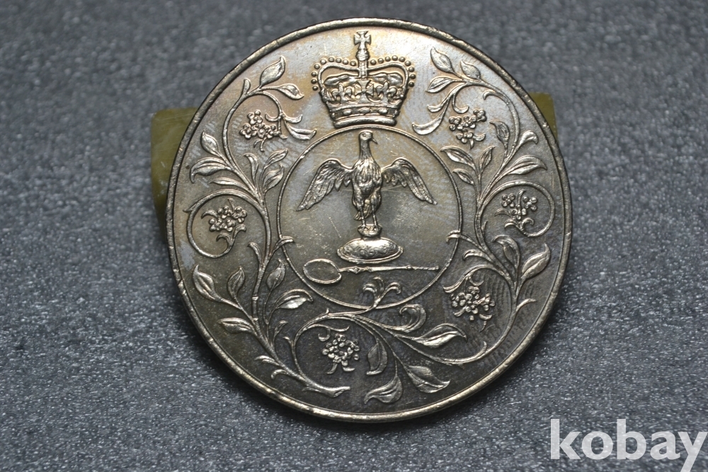 " 귀한종류 (38.5 mm 대형 크라운 사이즈)(극미품 이상~) " ~ 영국 엘리자베스 2세 즉위 25주년 기념주화 25뉴펜스 / 1977년도 제작발행주화" 영국 엘리자베스2세 즉위25주년 기념주화 / 대형 크라운 주화 "