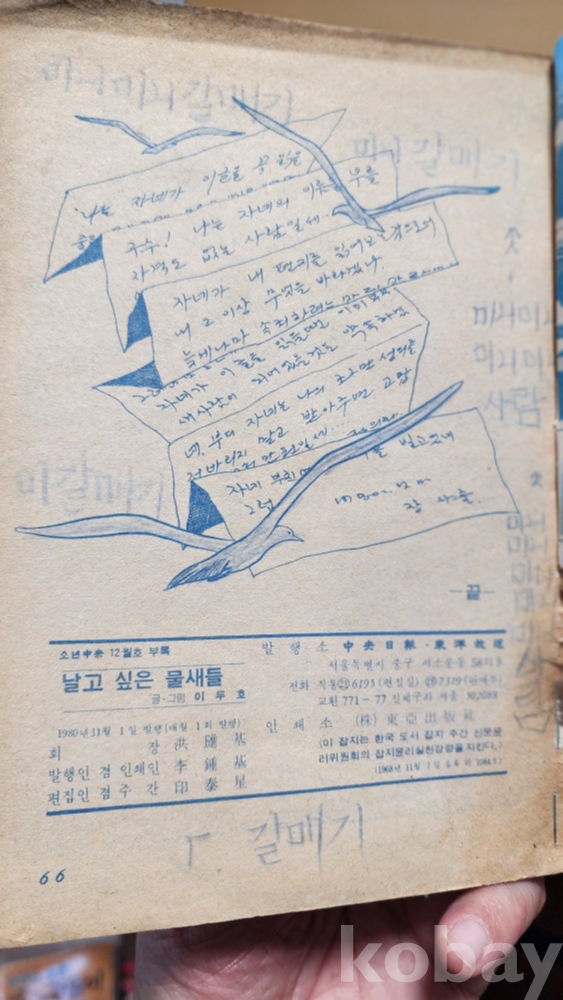 날고싶은 물새들, 이두호 그림, 소년중앙 부록, 1980년 12월호
