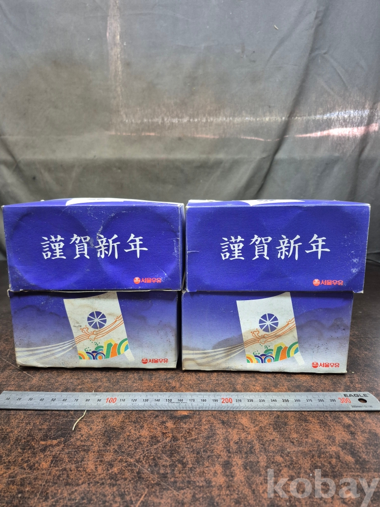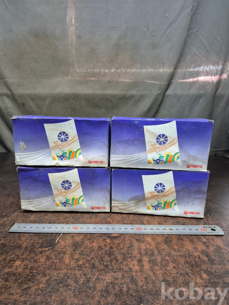 1980년대 서울우유 근하신년 미사용 음료수컵 2점 1세트*4박스 미사용품 박스품 16*8*9