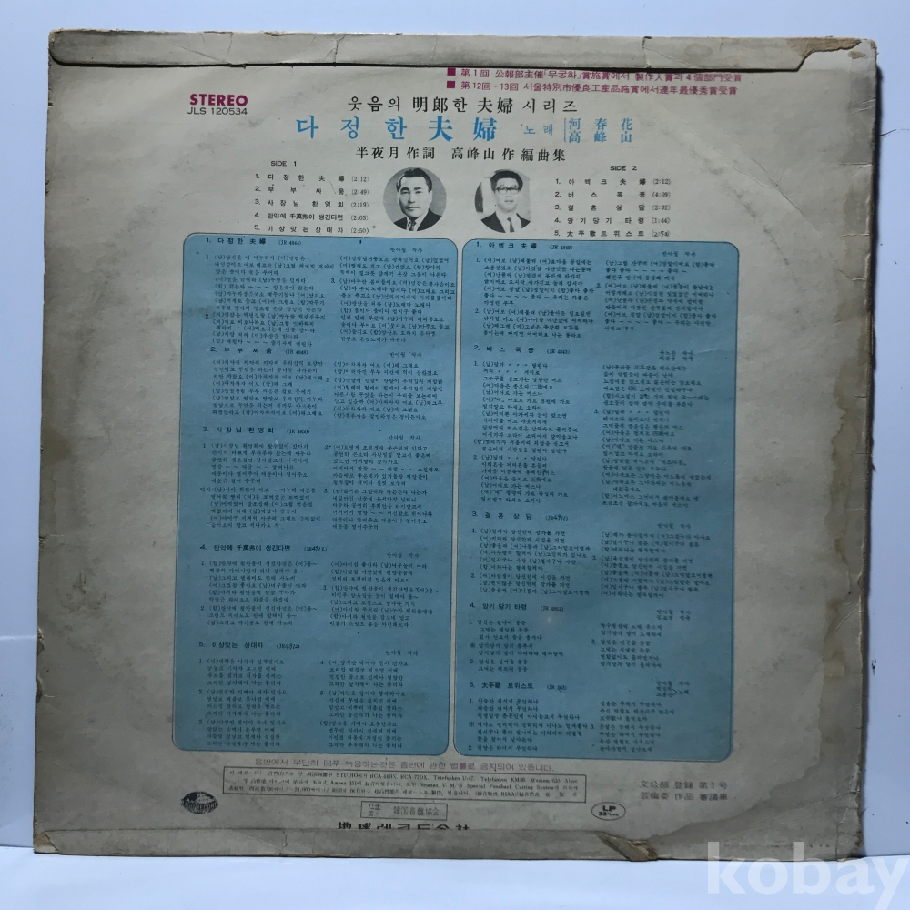 LP 20,200-43 하춘화 고봉산 - 다정한 부부/ 아벡크 부부 72 지구 자켓 VG+ 알판 EX