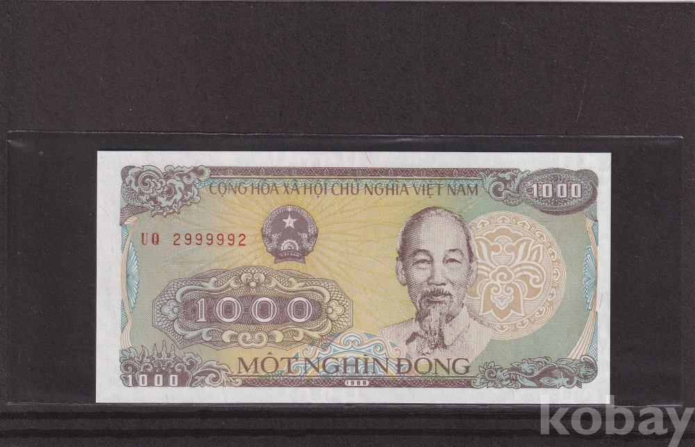 *베트남 특이번호 지폐 모음展* 1988년 1000동 UQ 2999992 - 5봉 레이더 미사용 지폐