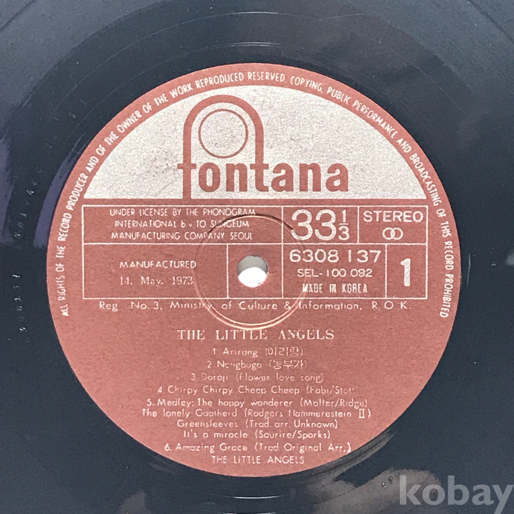LP 83,623-197 THE LITTLE ANGELS - 아리랑 . 자켓 無 알판 VG+ 73 년제작 국내반