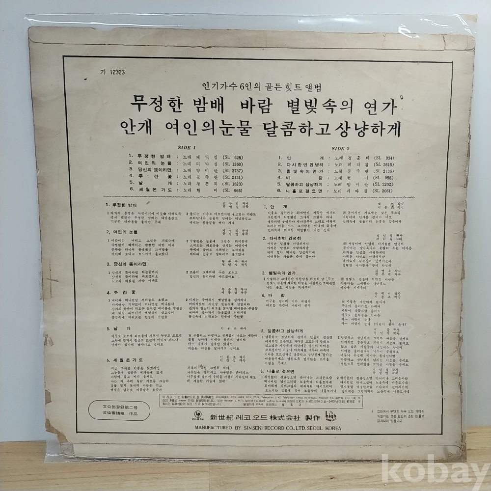 | 자켓상태 | VG : 주름, 접힘, 모서리 찢김 다수 | 음반상태 | NM : 개봉했으나 미사용급, 스크래치 없음 | 발매정보 | 초반 | 가사지여부 | 무 |