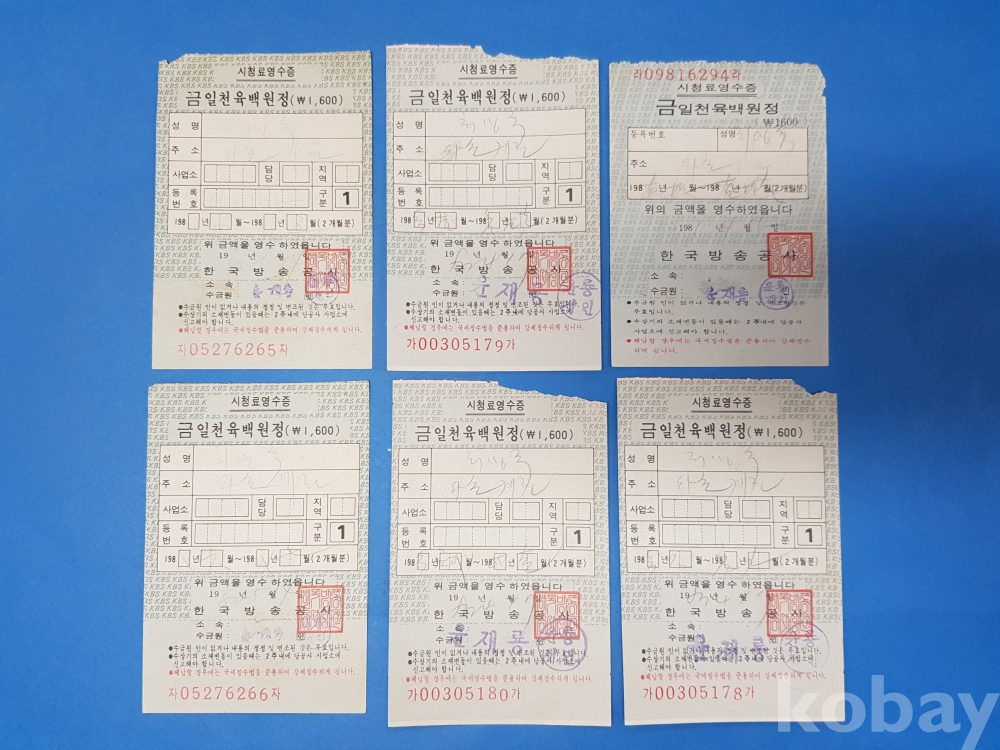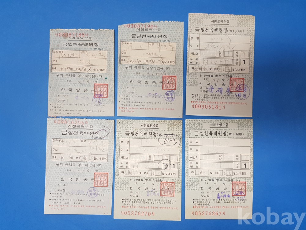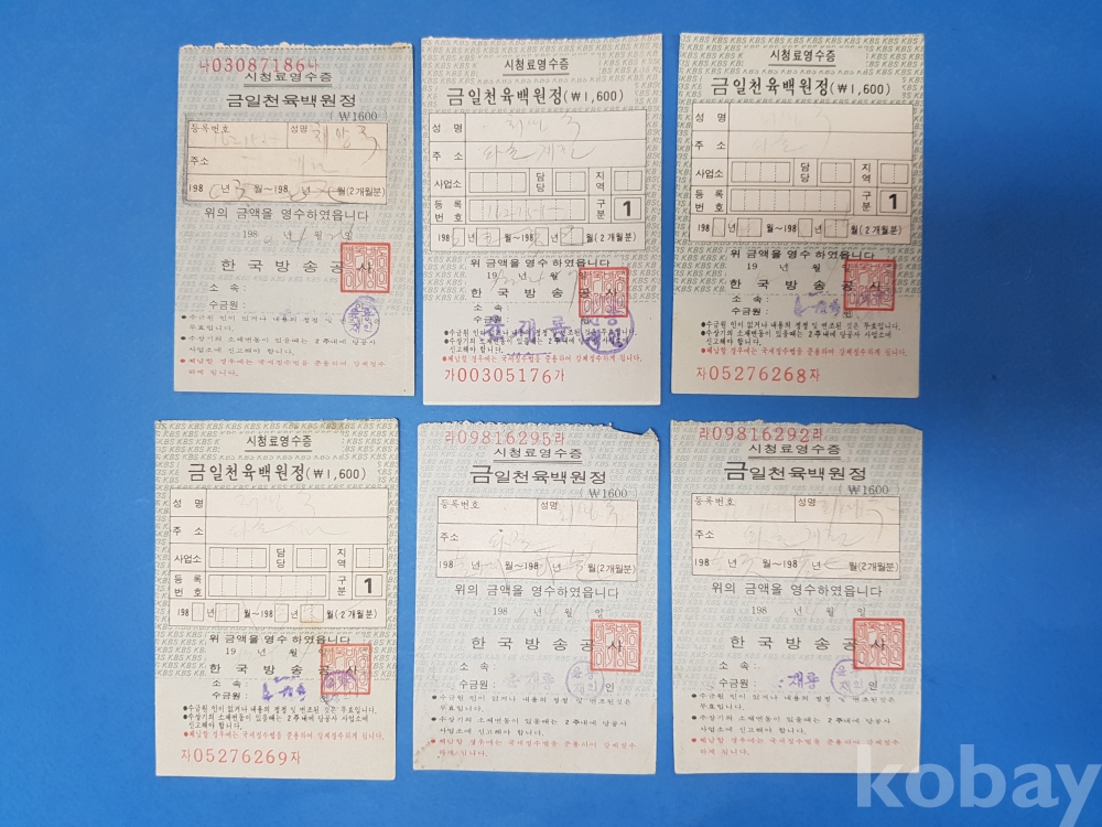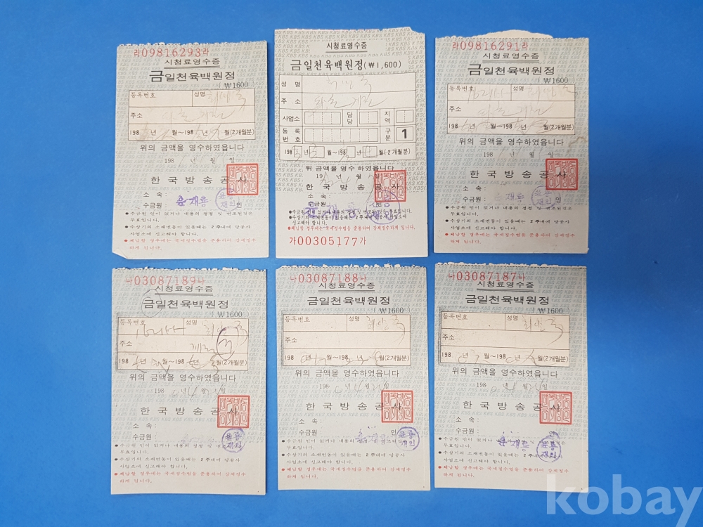 **** 한국방송공사 시청료 영수증/1600원/24매
