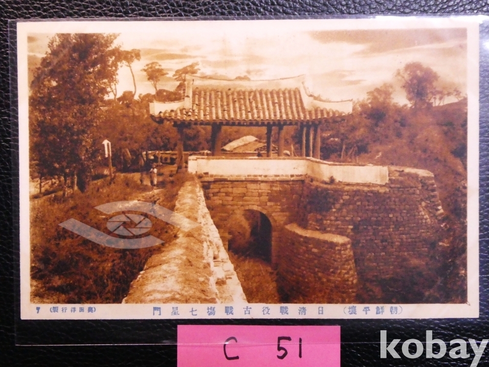 ▣근대한국엽서(진본): 청일전쟁의 옛 전쟁터 평양의 칠성문 전경/1매/역사자료, 일제강점기 사진엽서, 그림엽서, 회엽서.C51.