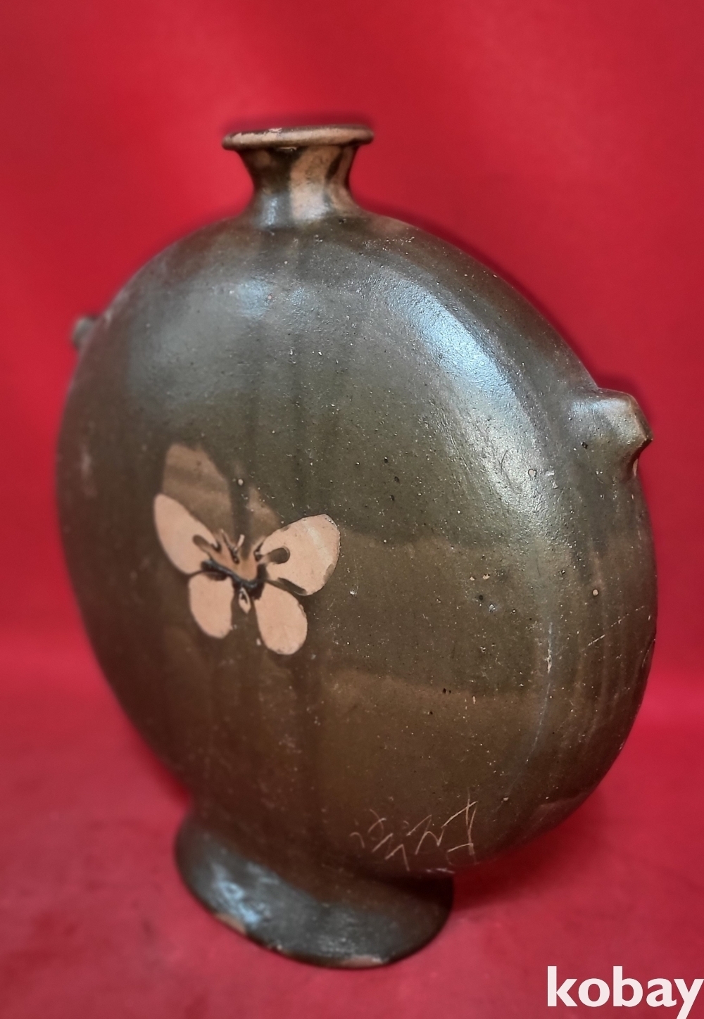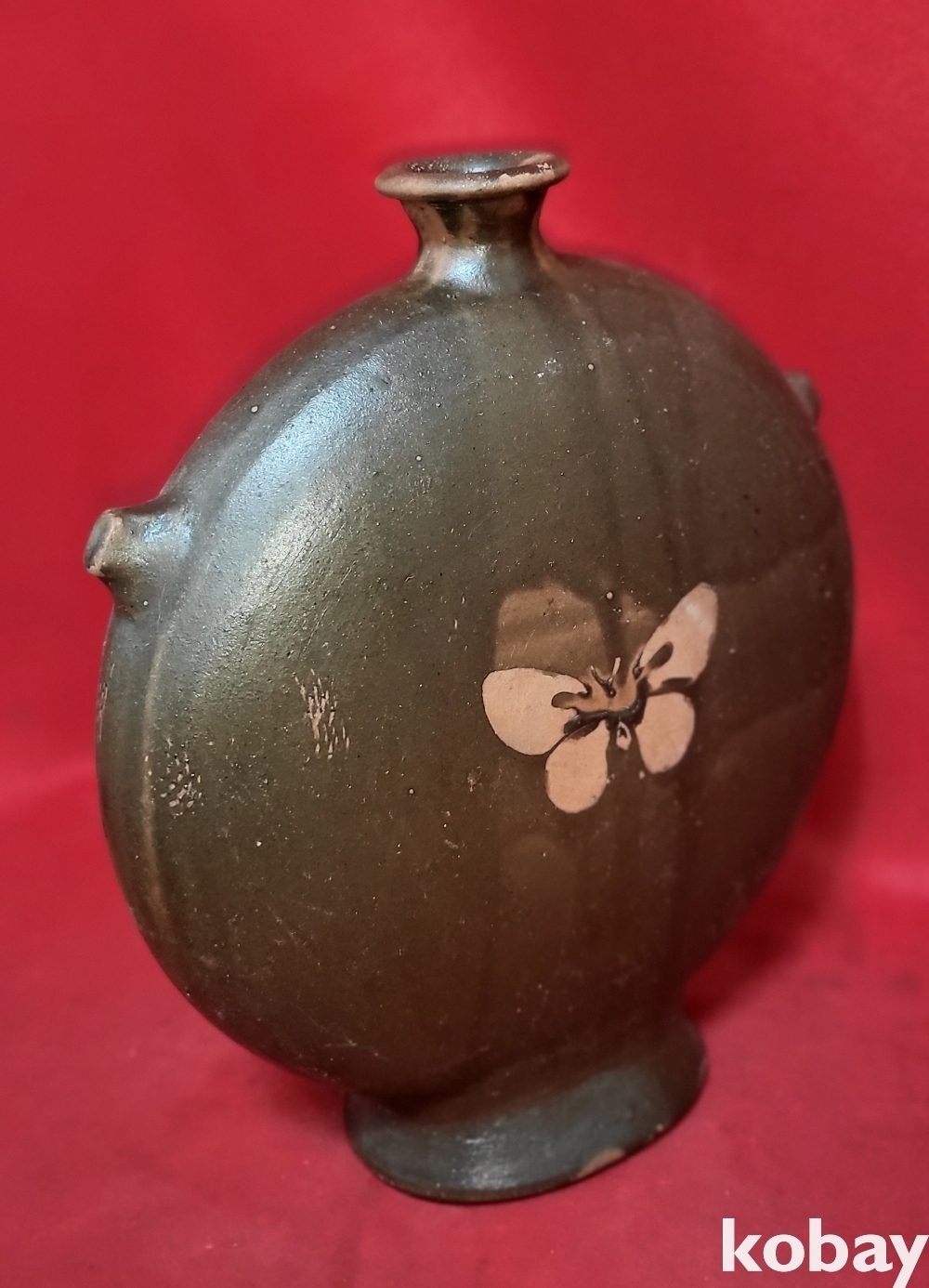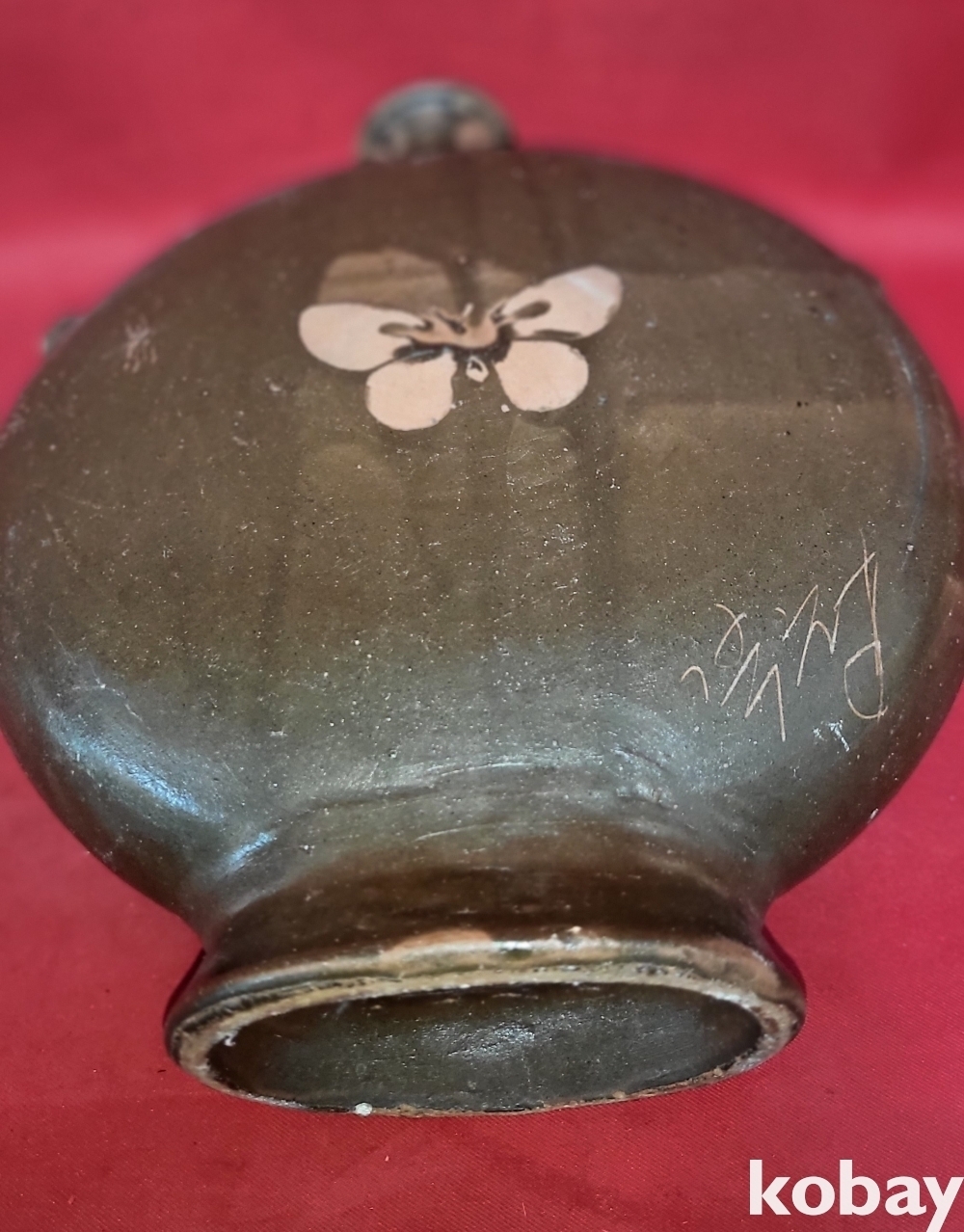 옹기에 나비(蝶)문양 양귀달린 편병입니다,