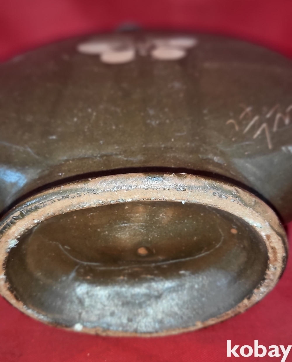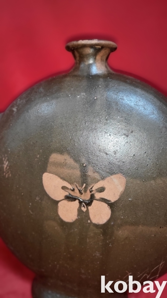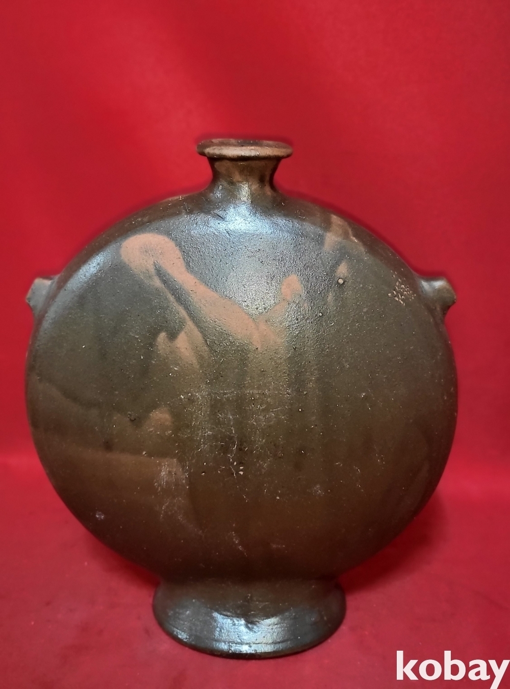 옹기에 나비(蝶)문양 양귀달린 편병입니다,
