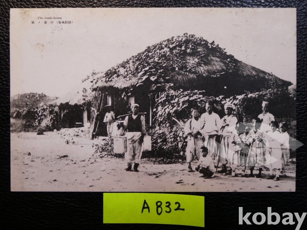▣근대한국엽서(진본): 시골의 주택 모습과 그 앞의 조선인들/1매/조선풍속/일제강점기 사진엽서, 그림엽서, 회엽서. A832