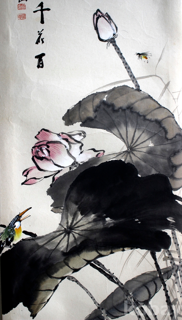 미술대전 4회 입선작가인 瑞菴(서암) 김만옥의 화조도 - 연꽃과 물총새