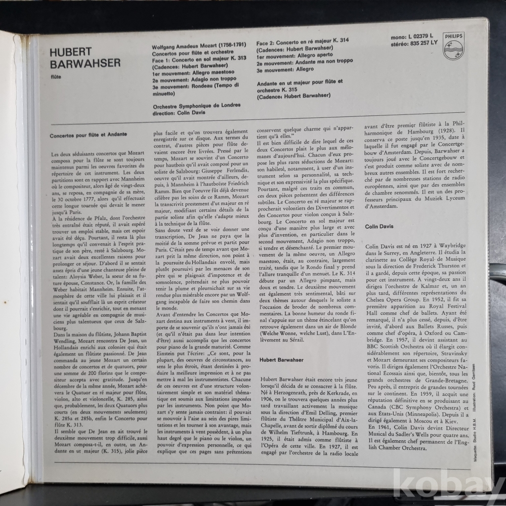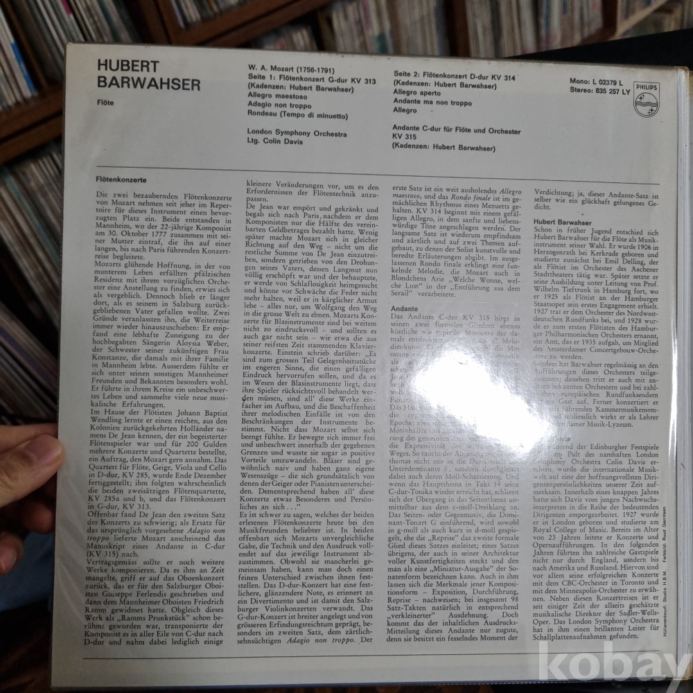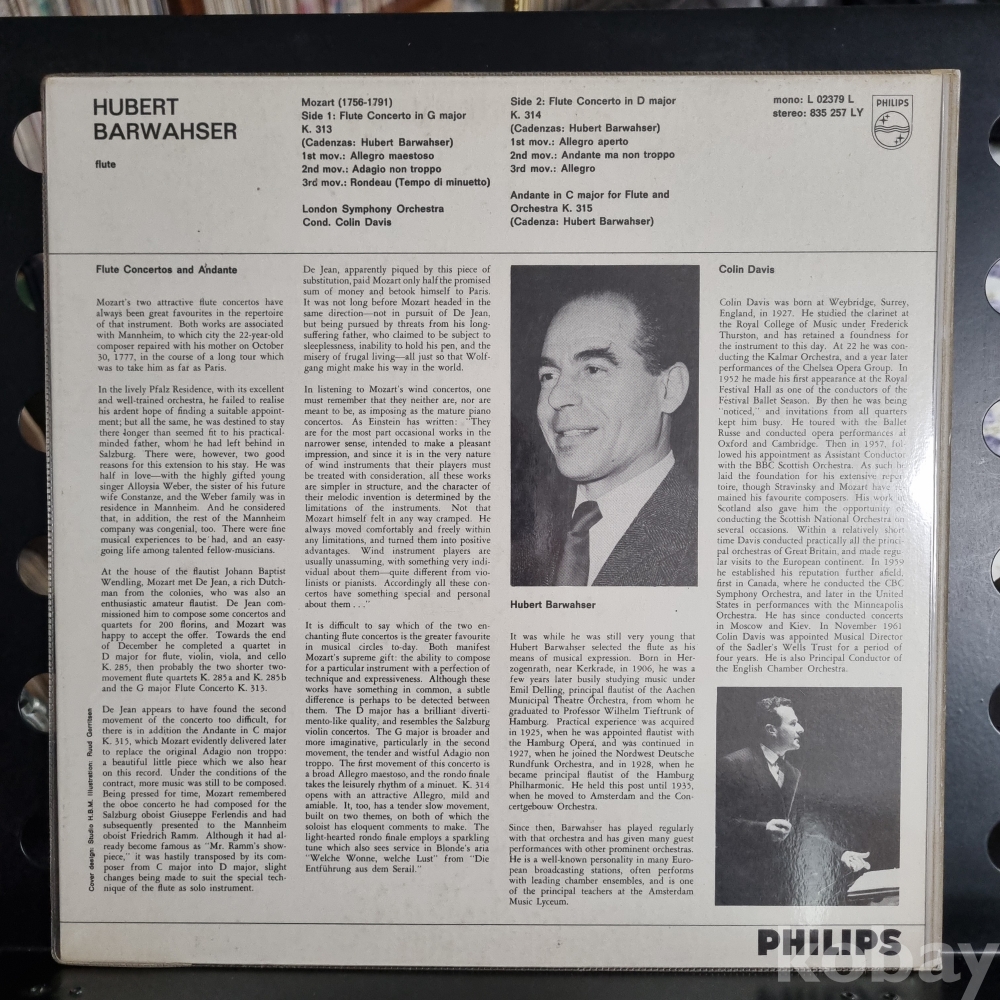 (클래식 명반) Mozart* - Hubert Barwahser - London Symphony Orchestra PHILIPS