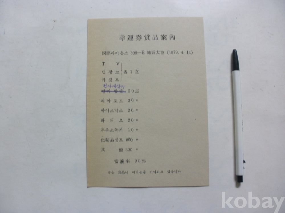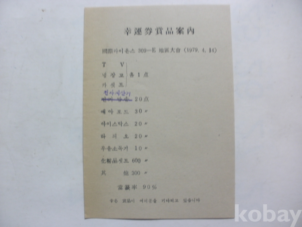 행운권 상품안내 - 국제아이온스.. (1979년)
