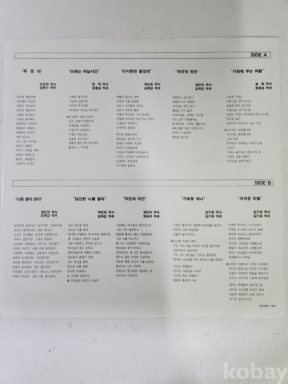 | 자켓상태 | EX : 약간의 마모, 모서리 찢김 존재 | 음반상태 | EX : 재생에 영향 없는 가벼운 기스 존재 | 발매정보 | 알수없음 | 가사지여부 | 유 |