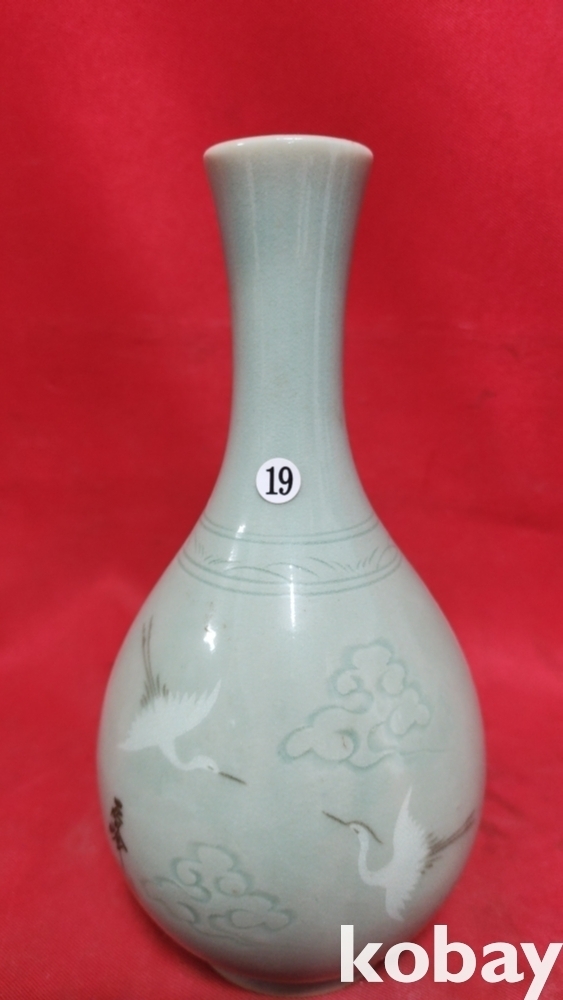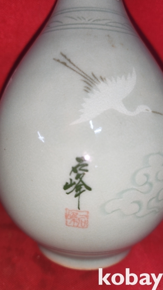 석봉도예 청자 운학문양 병입니다,
