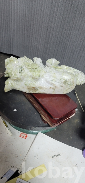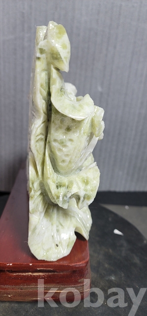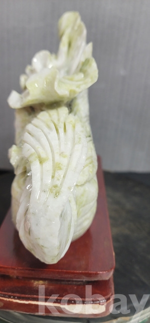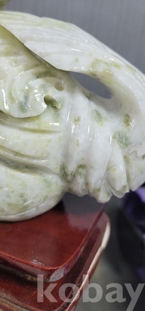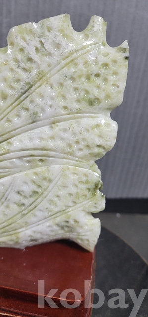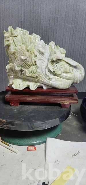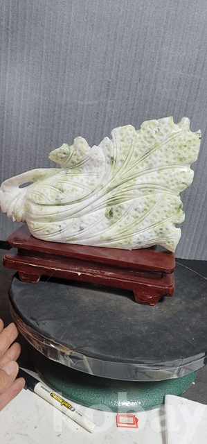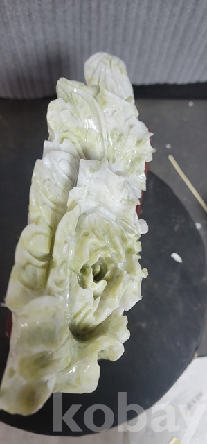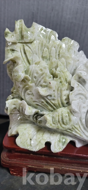 b-91.(대)천연옥으로정교하게깍아만든 배추문양장식품(통나무로깍은좌대포함)