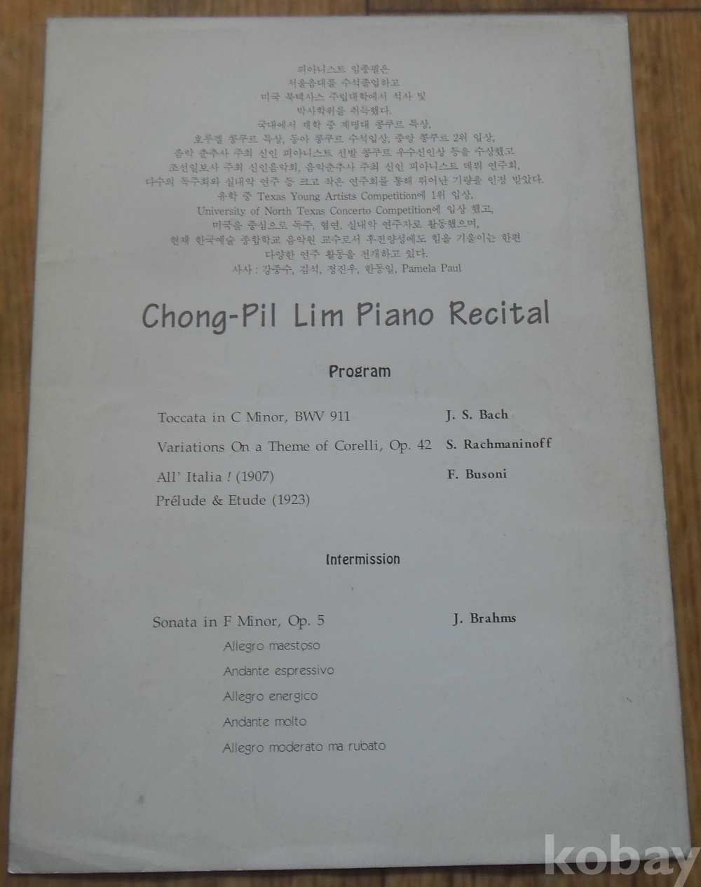 공연목록: 1995년 임종필 피아노 독주회