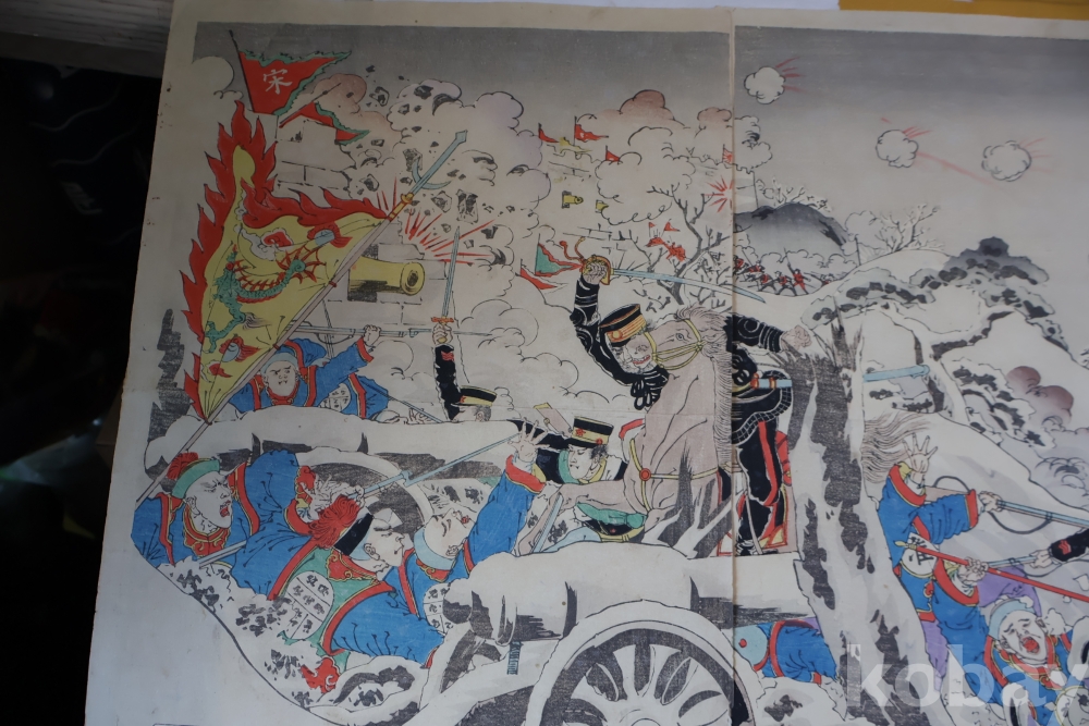 설경의 배경을 가진 명화 목판화 원본 청일 전쟁 임니다 위해위 전투를 다이나믹하게 표현한 명화 임니다 /