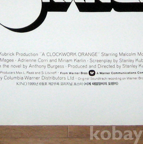 스탠리 큐브릭 감독 영화 / 시계태엽의 오렌지 95년 영화잡지 키노 특별부록 대형포스터 .