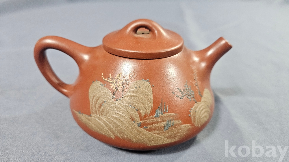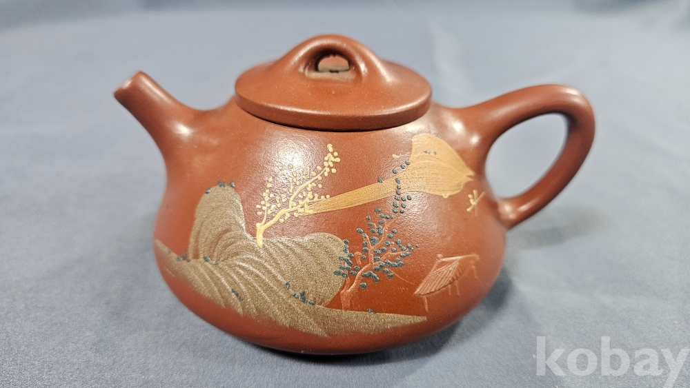 풍경화 문양이 잘 그려져있는 자사주전자 입니다.